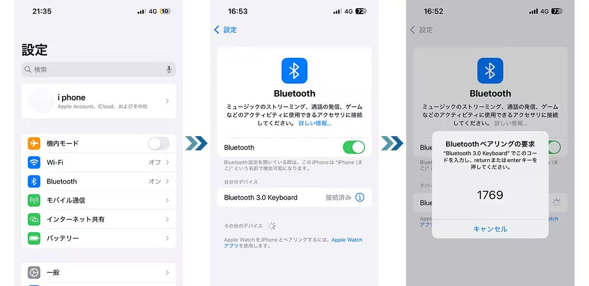 ・デバイスのBluetooth設定を開く:スマホやタブレットのBluetooth設定画面を開くと、「Bluetooth 3.0 Keyboard」というデバイス名が表示されます。