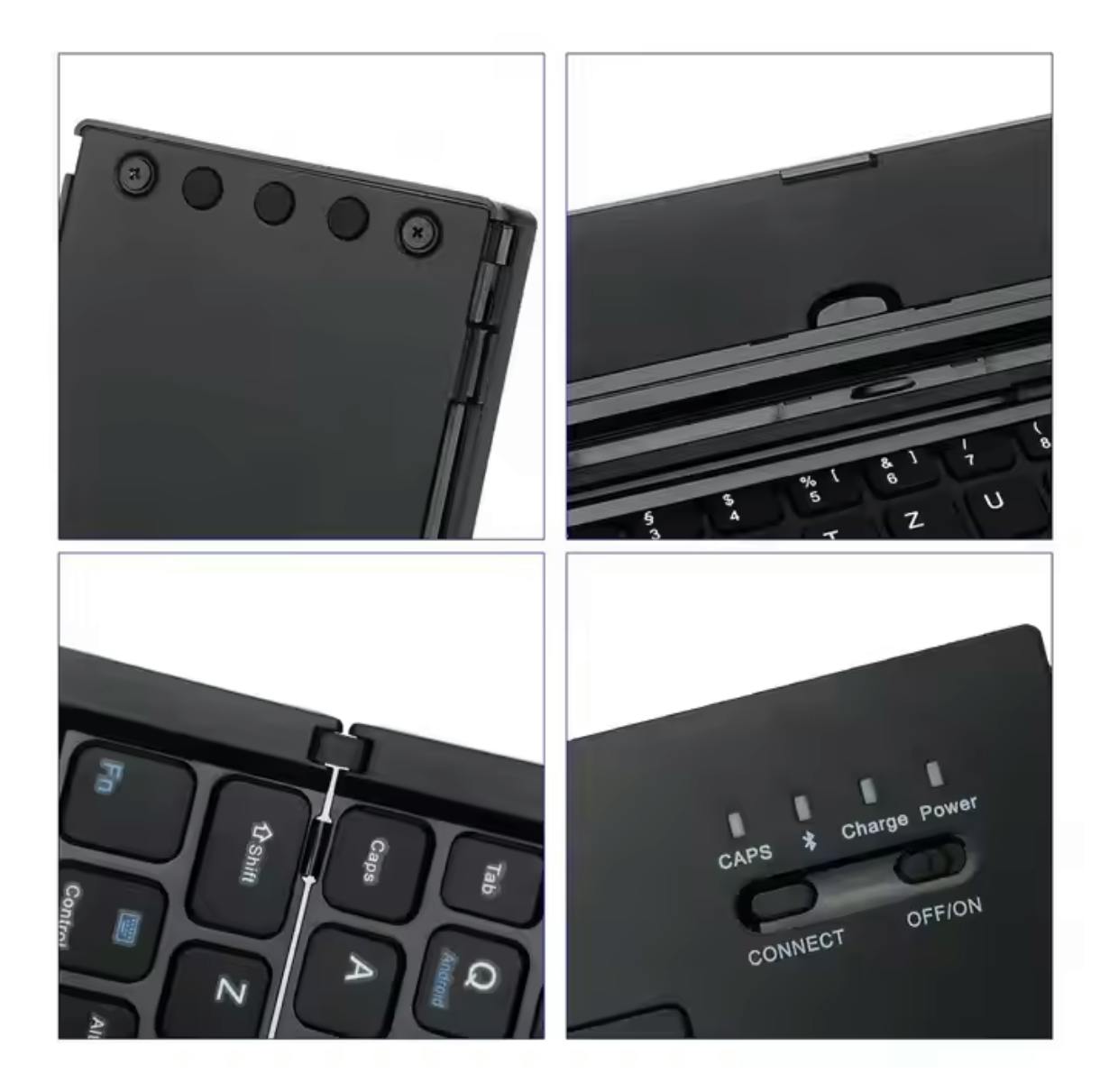 Mini Tablet Keyboardには、柔軟性と安定性を兼ね備えたジョイント構造が採用されています。長時間の使用でもタイピング感が損なわれず、快適に入力を続けることができます。また、ジョイント部分には滑りにくい素材が使用されており、スマートフォンやタブレットをしっかりと支える設計。タイピング中にぐらついたり、位置がズレるといったストレスを感じることなく、集中して作業を進められます。