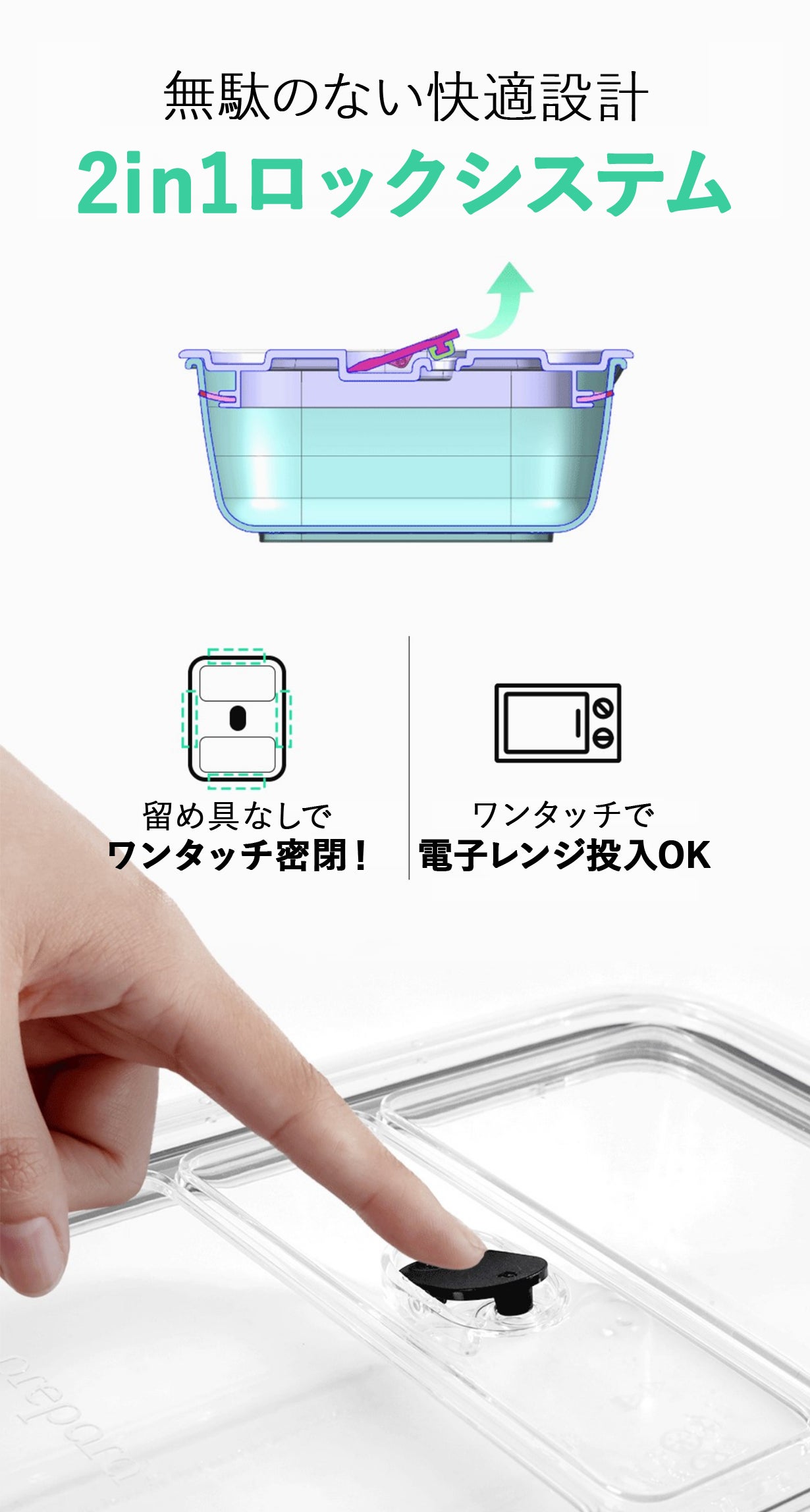 ワンタッチで簡単に密閉保存ができるから、食材の鮮度をしっかり保つ!