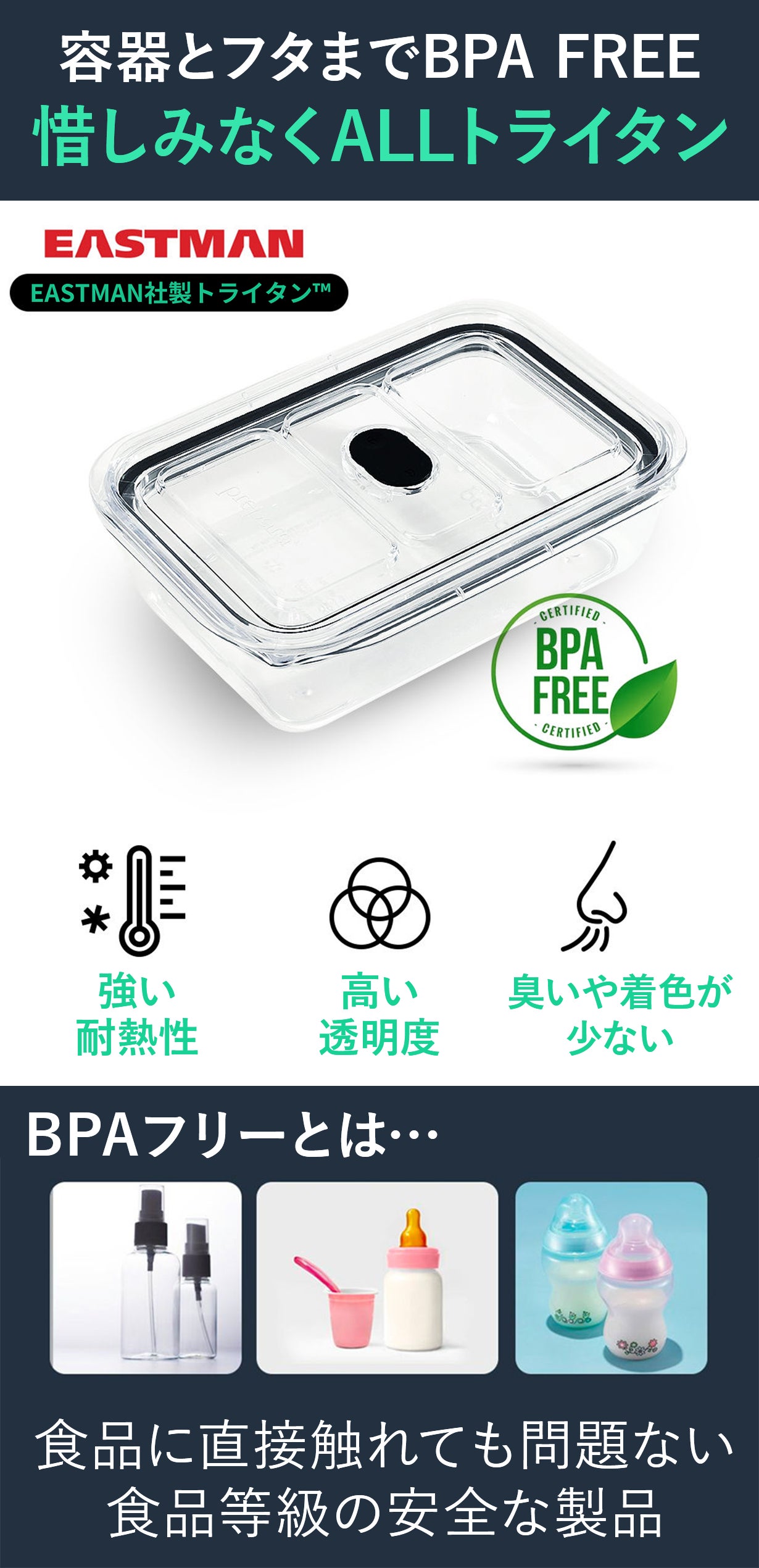 色や匂いもつきにくいトライタン素材で、手洗いも楽々!