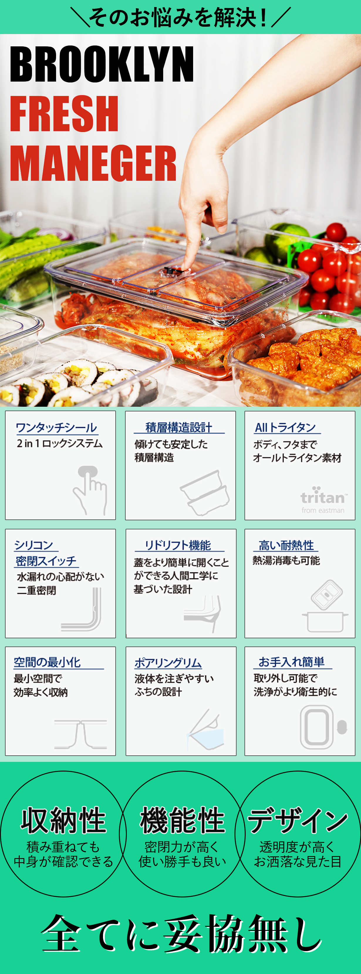 日々の料理や保存作業をもっと簡単で安心してできるように、密閉力がしっかりしていて開けやすい容器を探していたところ、FRESH MANAGERに出会いました。おしゃれで使いやすく、キッチンもすっきり使用でき、家族全員安心して使用できるのでどんな人にも自信をもってお勧めできます!