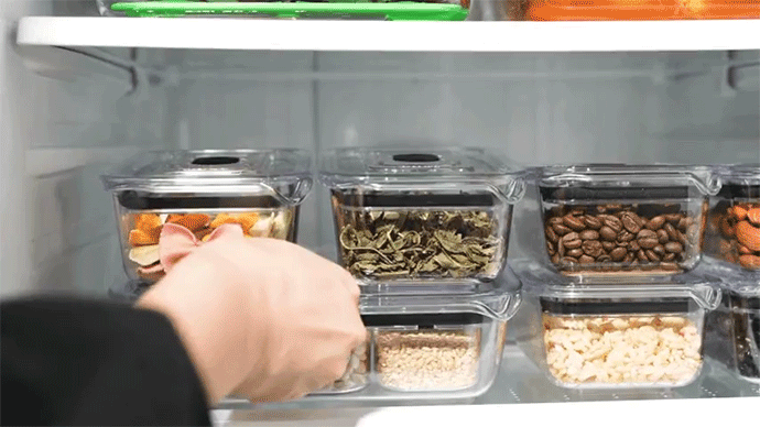 ワンタッチで簡単に密閉保存ができるから、食材の鮮度をしっかり保つ!