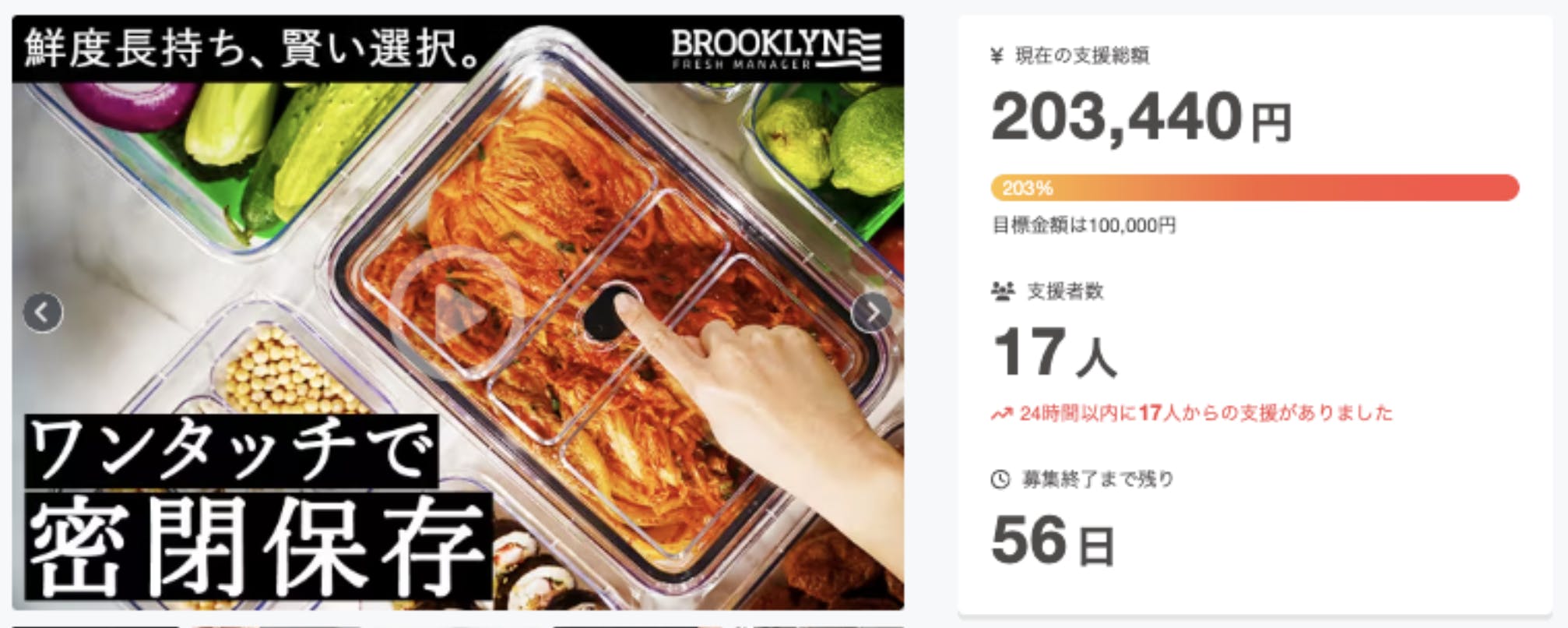 この度は「プラスチック×ガラス=新素材!!ワンタッチ密閉で鮮度長持ちな美しい食品保存容器【BROOKLYN FRESH MANAGER】」に支援頂き誠にありがとうございます!