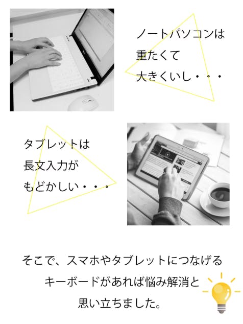 そこで、スマホやタブレットにつなげるキーボードがあれば悩み解消と思い立ち商品開発しました!
