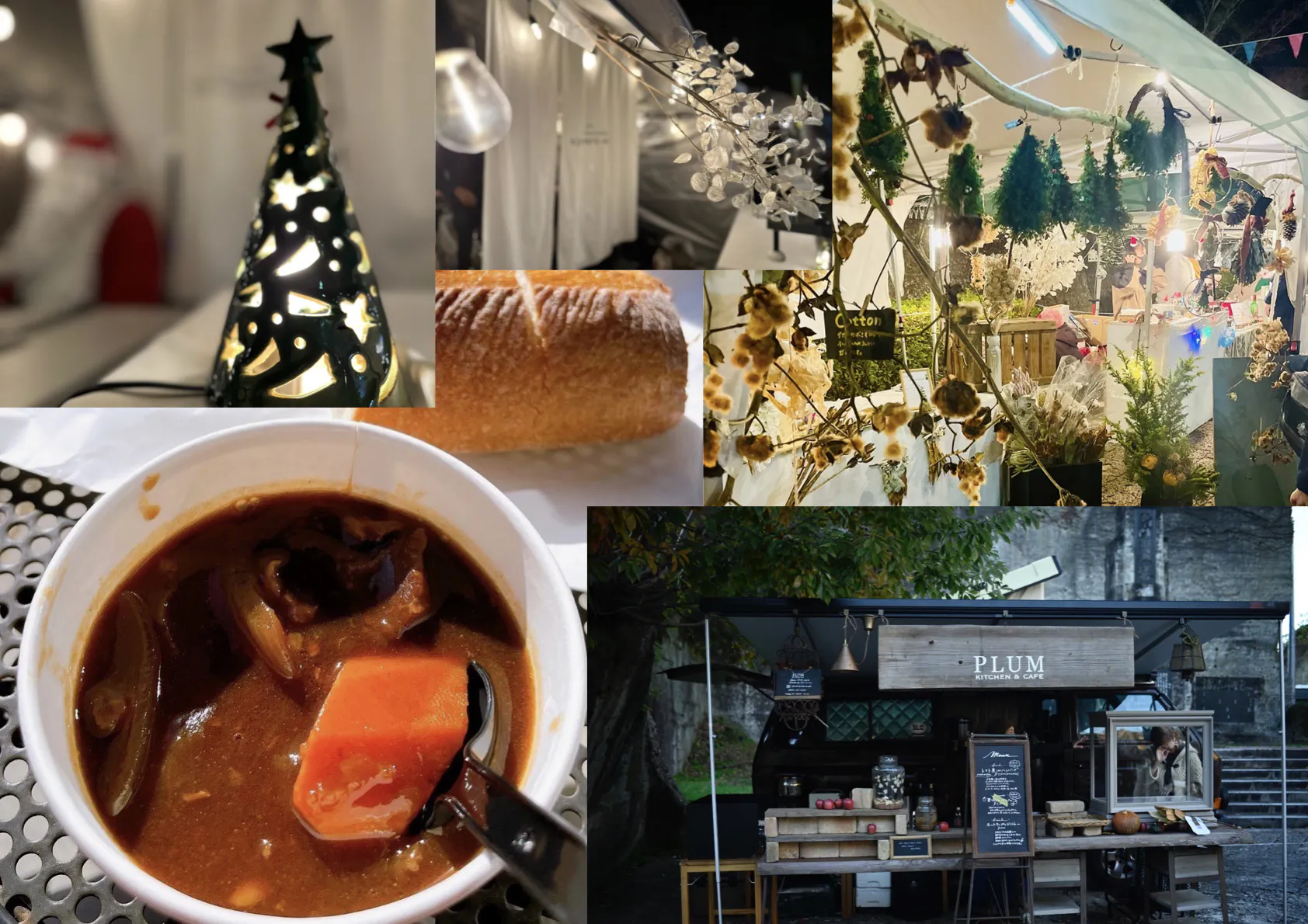:こだわりレストランの美味しい料理やドリンク、クリスマスオーナメントのお店など沢山出店予定。