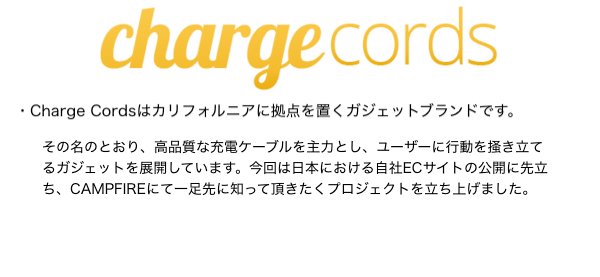 2018/07/05 22:32本当に本当にありがとうございます! ご支援いただいた方、お気に入りとして注目していただいた方、興味を持ってこのプロジェクトを覗いてみていただい方、本当にありがとうございます。まずは、目標金額達成まで、頑張りたいと思います。 Charge Cordsは、ライトニングケーブルの決定版だと考えています。市場には高品質なライトニングケーブルがたくさんあります。「高い耐久性」という宣伝文句はもはや、あまり意味を成していません。なぜなら耐久性は当然備わるべき要素だからです。Charge Cordsは、無機質で丈夫なだけのケーブルではありません。ユーザーの感性に響く鮮やかなカラーは、ケーブル1本にも愛着を生みます。ぜひお手に取って頂きたいライトニングケーブルの決定版です。 引き続き、ご支援、ご注目、よろしくお願いします。 もっと見る
