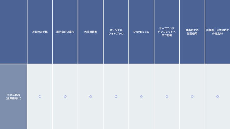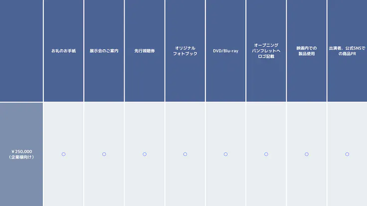 映画の冒頭OP部分と本作パンフレットへ企業ロゴを記載いたします。