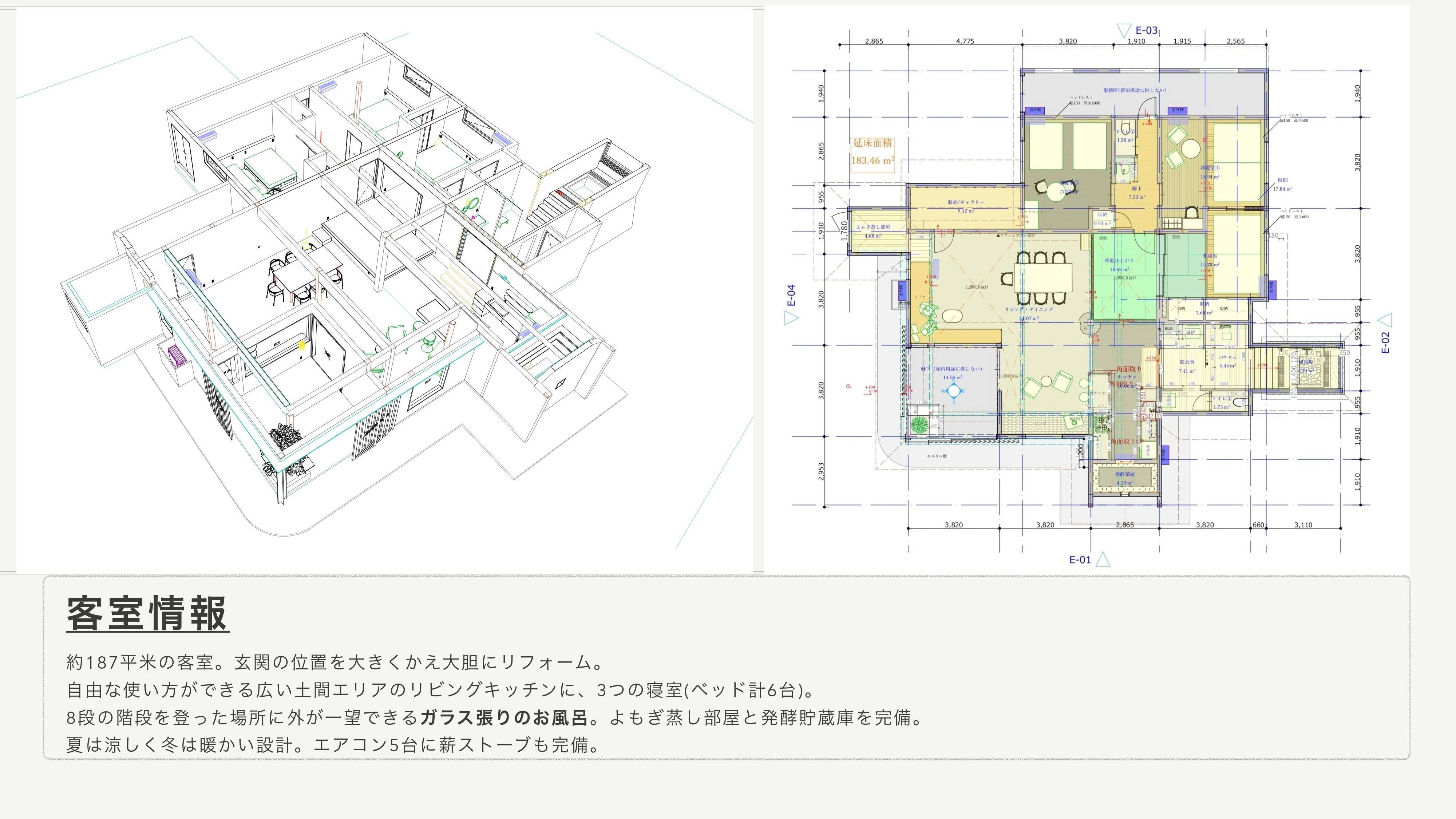 自然に癒されることはもちろん、発酵をテーマとした様々なワークや体験を通して心も身体も元気に‥そして、宿泊者が次に泊まる方の為に発酵調味料を仕込むなどの体験も考えております。