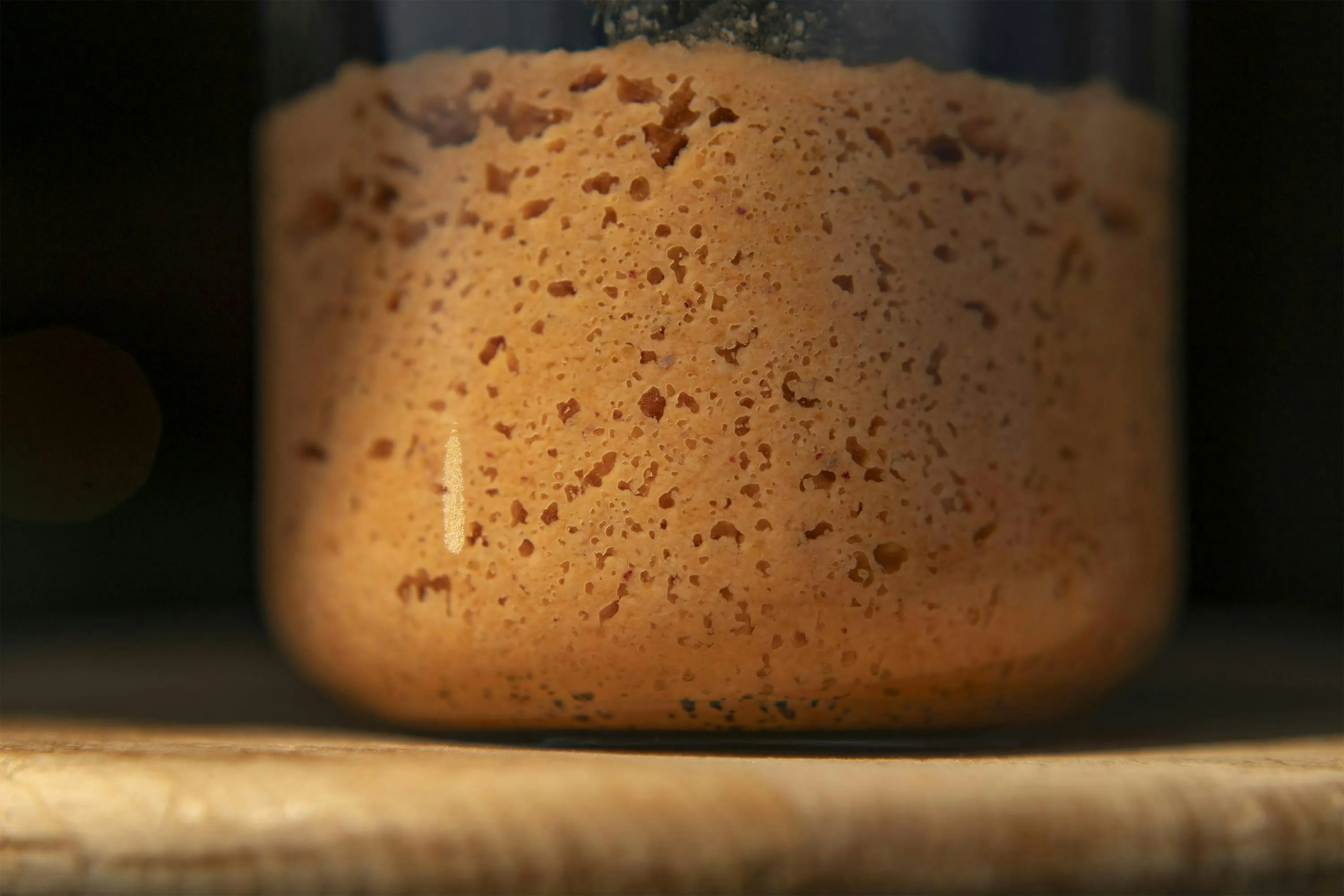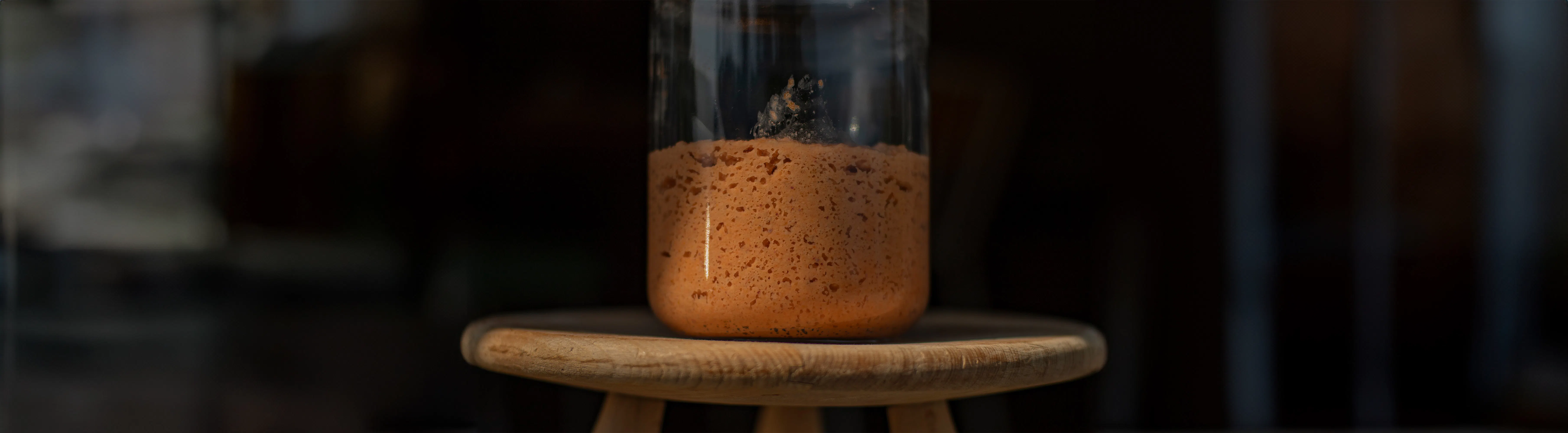 妻が第一子出産後、ふと参加したパン教室で譲っていただいた酵母の種。パン作りは家族に振る舞う程度でしたが、この酵母の種だけは開業するまでの8年間、絶やすことなく継ぎ足し育てていました。