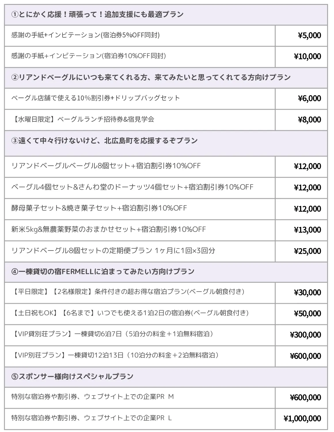 様々なリターンをご用意させて頂きました。