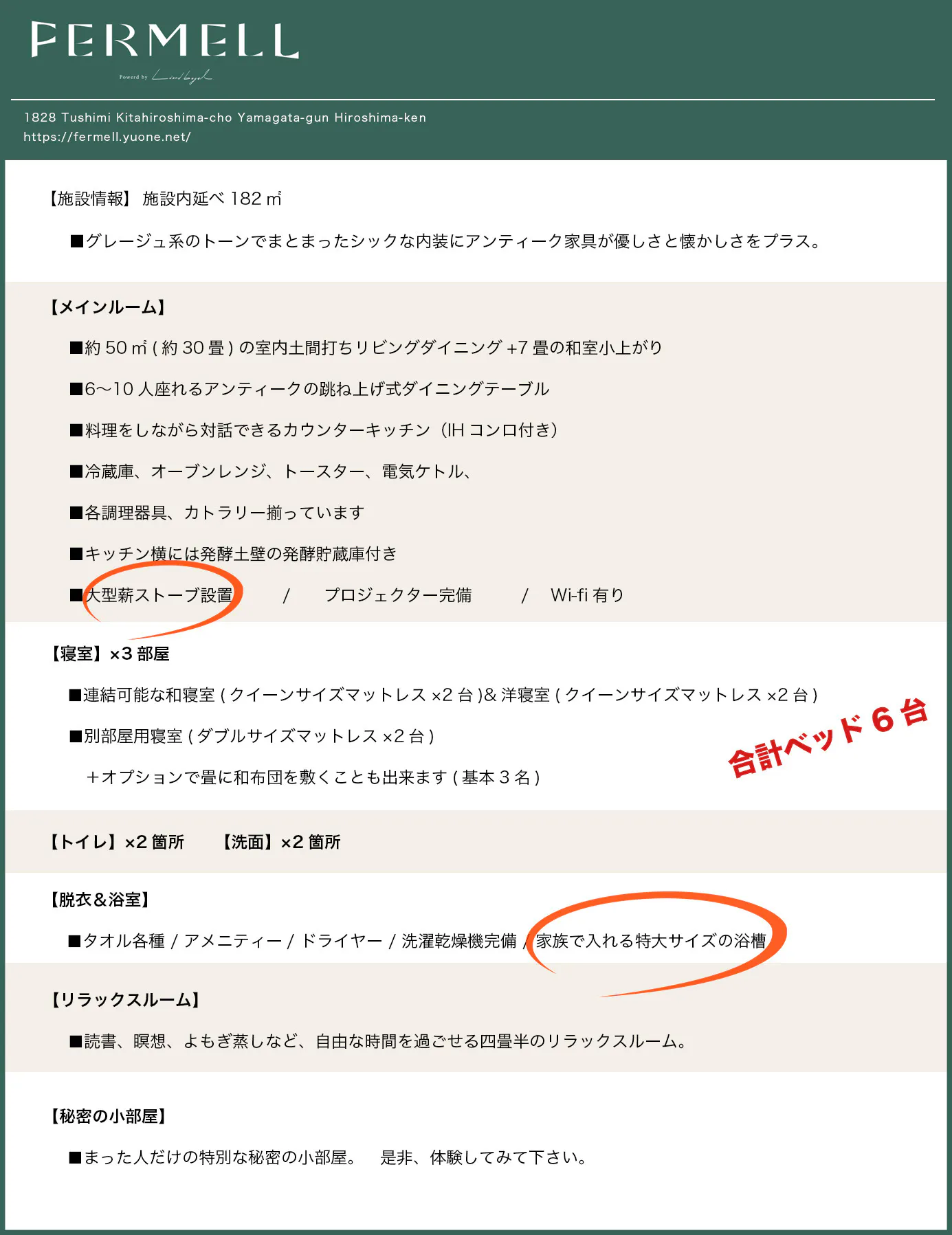 2025/04/01 14:32皆さま、いつも温かい応援を本当にありがとうございます。長らく活動報告が開いてしまったこと本当に申し訳ございません!!FERMELLは本日、2025年4月1日よりグランドオープンを迎えることができました。これまでご支援くださった皆様のおかげです。改めて、心より感謝申し上げます。プレオープン期間中には、たくさんのお客様にご宿泊いただき、その中で様々なご意見や改善点を教えていただきました。とても勉強になることばかりで、まだまだ未熟な部分もありますが、一つずつ丁寧に、しっかりと改善していこうと思っています。また、皆様のご支援により、予定していた目隠しの柵も無事に設置することができました。資金繰りがうまくいかず、正直なところ不安に思うこともありましたが、皆様からのご支援があったからこそ、ここまで来ることができました。本当にありがとうございます。これから春に向けて、さらに庭の整備や細かなアップデートを進めながら、FERMELLを「より心地よい空間」へと成長させていきます。皆様からいただいた応援に、形でお返しできるよう、これからも誠実に、前向きに取り組んでまいります。ご支援いただいた皆様へ:無料宿泊券&割引券のご案内 【無料宿泊券をご支援いただいた方へ】クラウドファンディングにて「無料宿泊券付きプラン」をご支援いただいた皆様、宿泊券は2年間有効ですので、いつでもご利用いただけます。ご予約は、以下の専用予約サイトよりお願いいたします。▶︎ ご予約はこちらからhttps://reserva.be/fermellご予約時には、「CAMPFIREリターン無料宿泊券使用」と備考欄にご記入ください。また、**お支払い方法は「現地払い」**を選択してください。お名前と照らし合わせてこちらで確認後、宿泊料金を無料に変更させていただきます。※ご注意:宿泊券のご利用は宿泊基本料金分が対象となります。+オプション追加の場合の料金は別途発生いたしますので、ご了承ください。【10%OFF宿泊割引券をお持ちの方へ】「10%OFFチケット」をお持ちの方は、予約時に記載されていますクーポンコードをご入力いただくことで割引が適用されます。詳細はチケットに記載された内容をご確認ください。ご不明点などございましたら、下記までお気軽にお問い合わせください。fermell@yuone.netそして、本日より 一般予約の受付も開始 いたしました!上記の予約サイトから、どなたでもご予約可能となっております。今後とも、FERMELLをどうぞよろしくお願いいたします。皆様にお会いできる日を、心より楽しみにしております! もっと見るクラウドファンディング終了しましたー!!!目標達成、本当に本当にありがとうございました!