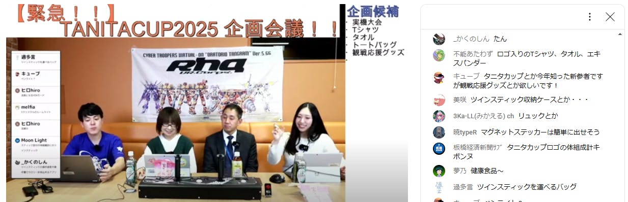 次回の「TANITA CUP 2025」をファイナル大会と位置付けた私たちは、「皆さんと一緒に作る」というツインスティック・プロジェクト」の原点に立ち返り、ツインスティックの商品化を目指していたあの頃のように、ファンの皆さんと一緒にこの大会作り上げたいと考えました。