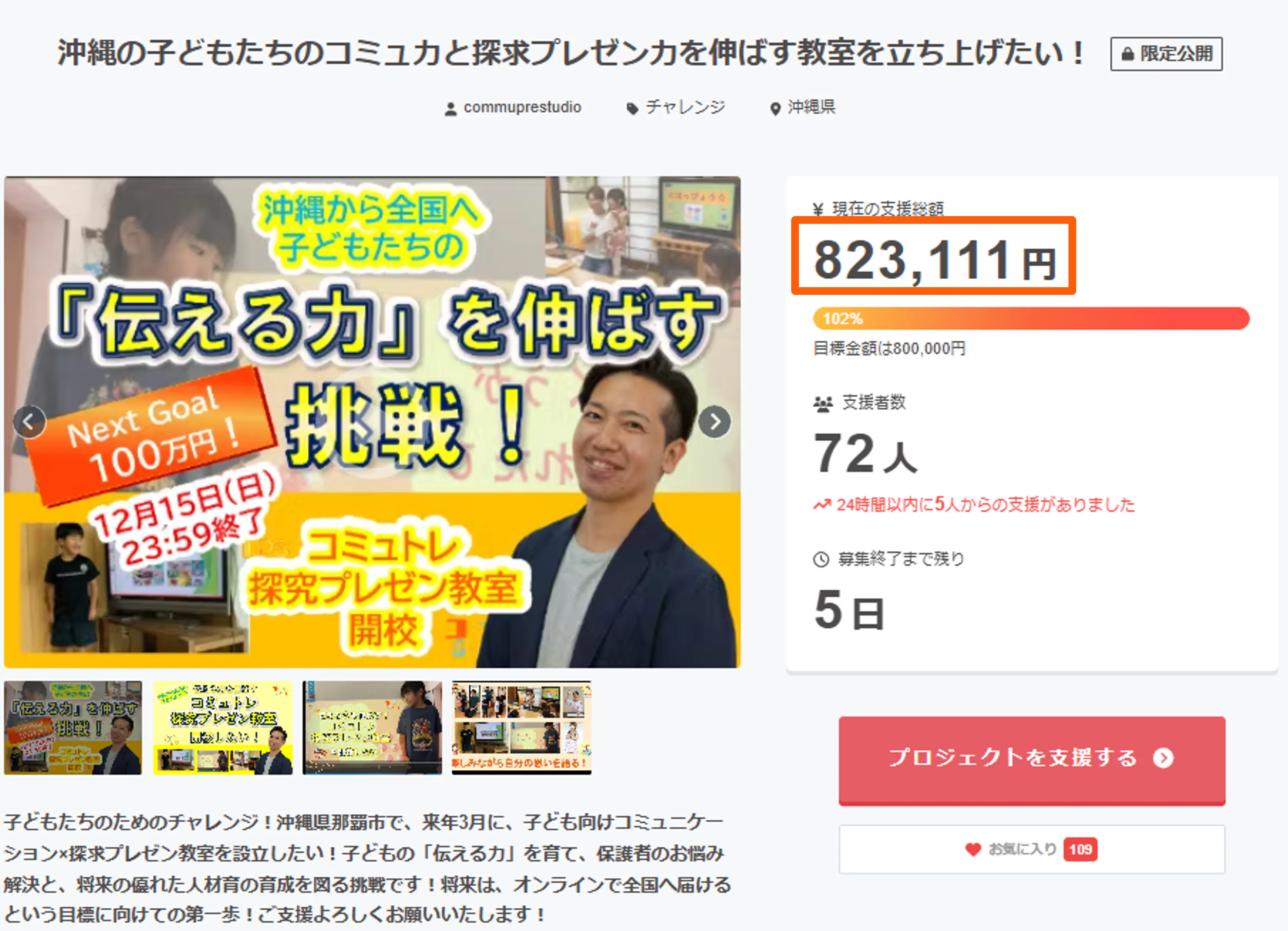 総支援者数72名もの方々にご支援いただきました!