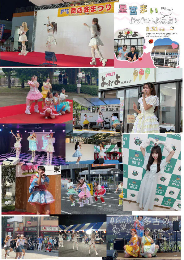 ①八千代市農協さまとのコラボで「よったいよ やちよ」を制作。地元アイドル 星宮まい が披露し、八千代市農協様のお店「よったいよ」のPRソングとして活用してくださいました。