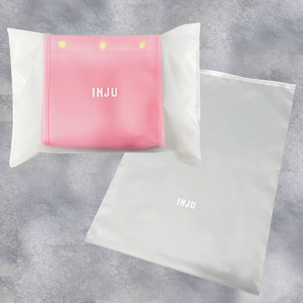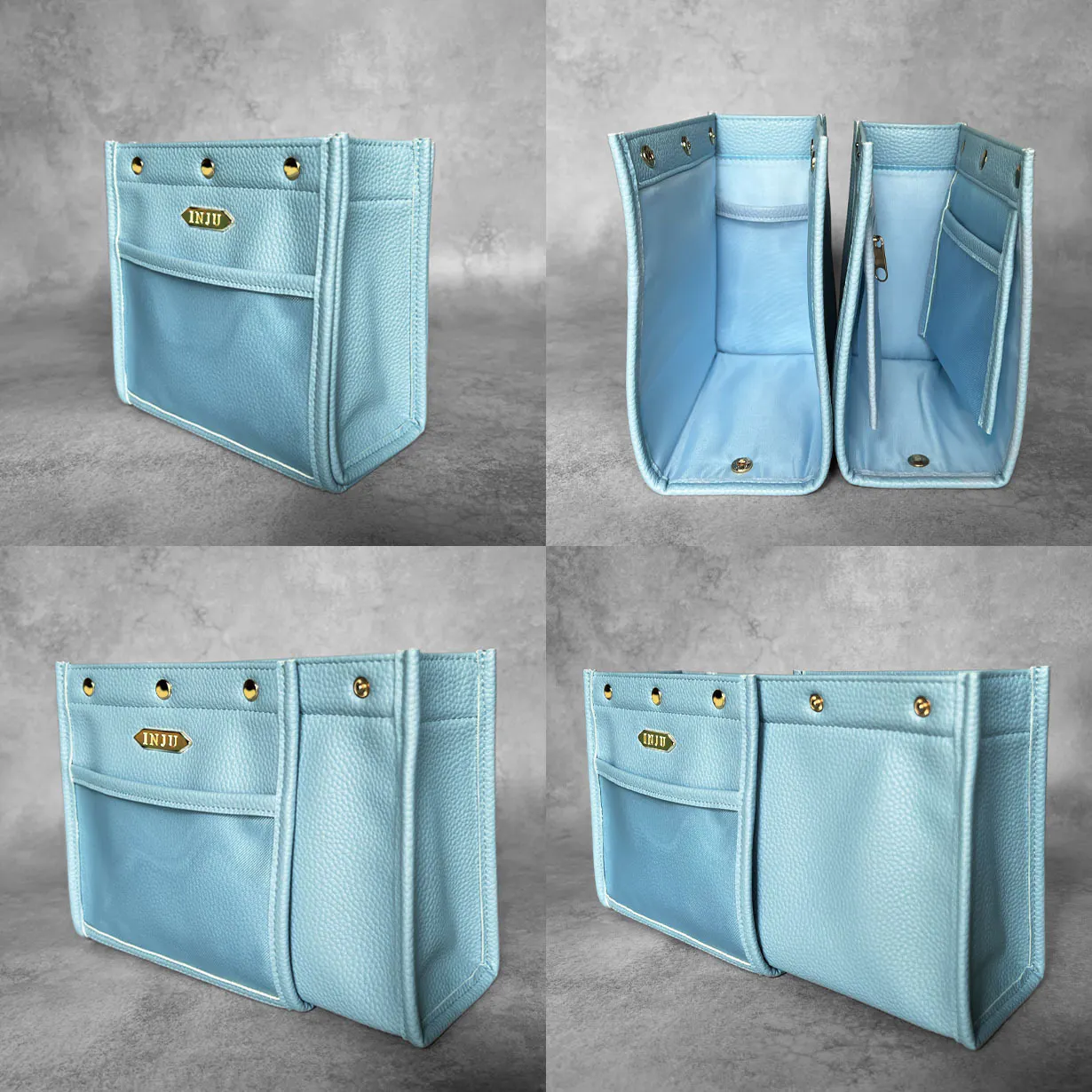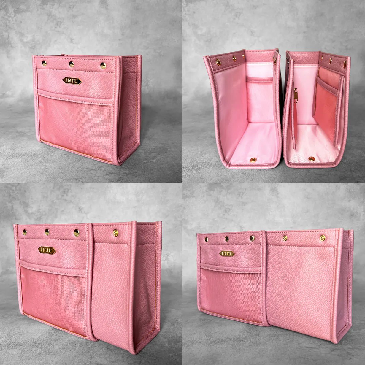 バッグや小物収納アイテムの内側を意味する「Inside」気持ちの内面を意味する「Inner」の頭文字をとり、人前に出しても恥ずかしくない品質で、ジュエリーを身に着けた時に体感するような歓びに満たされる小物収納アイテムとしてお届けしたい思いから「INJU」と名付けました。