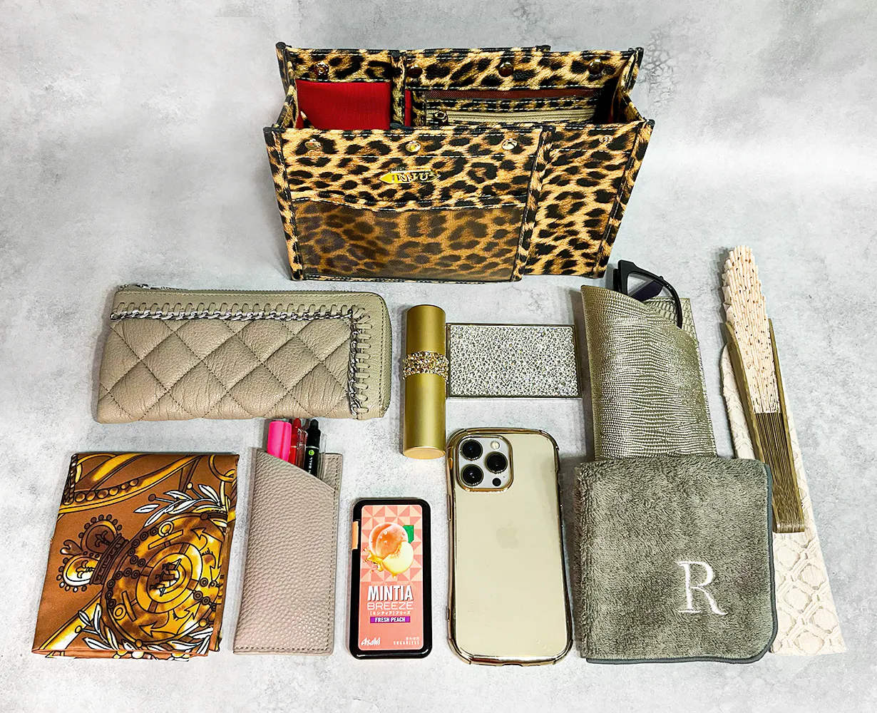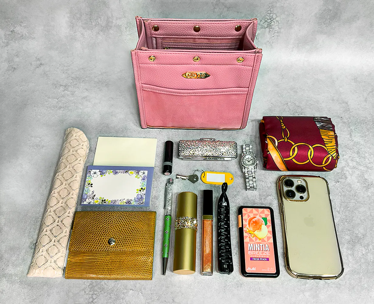 その後、販売員として入社したアパレル商社勤務時代、6年目からはテレビ通販の企画担当者となり、コスチュームジュエリーやバッグなどをご紹介する中で、人前に出しても恥ずかしくない小物収納ケースの需要の高さを感じる企画があり、それ以降、オシャレ感や上質さを取り入れながら、バッグの中で使用する小物収納アイテムを開発してまいりました。