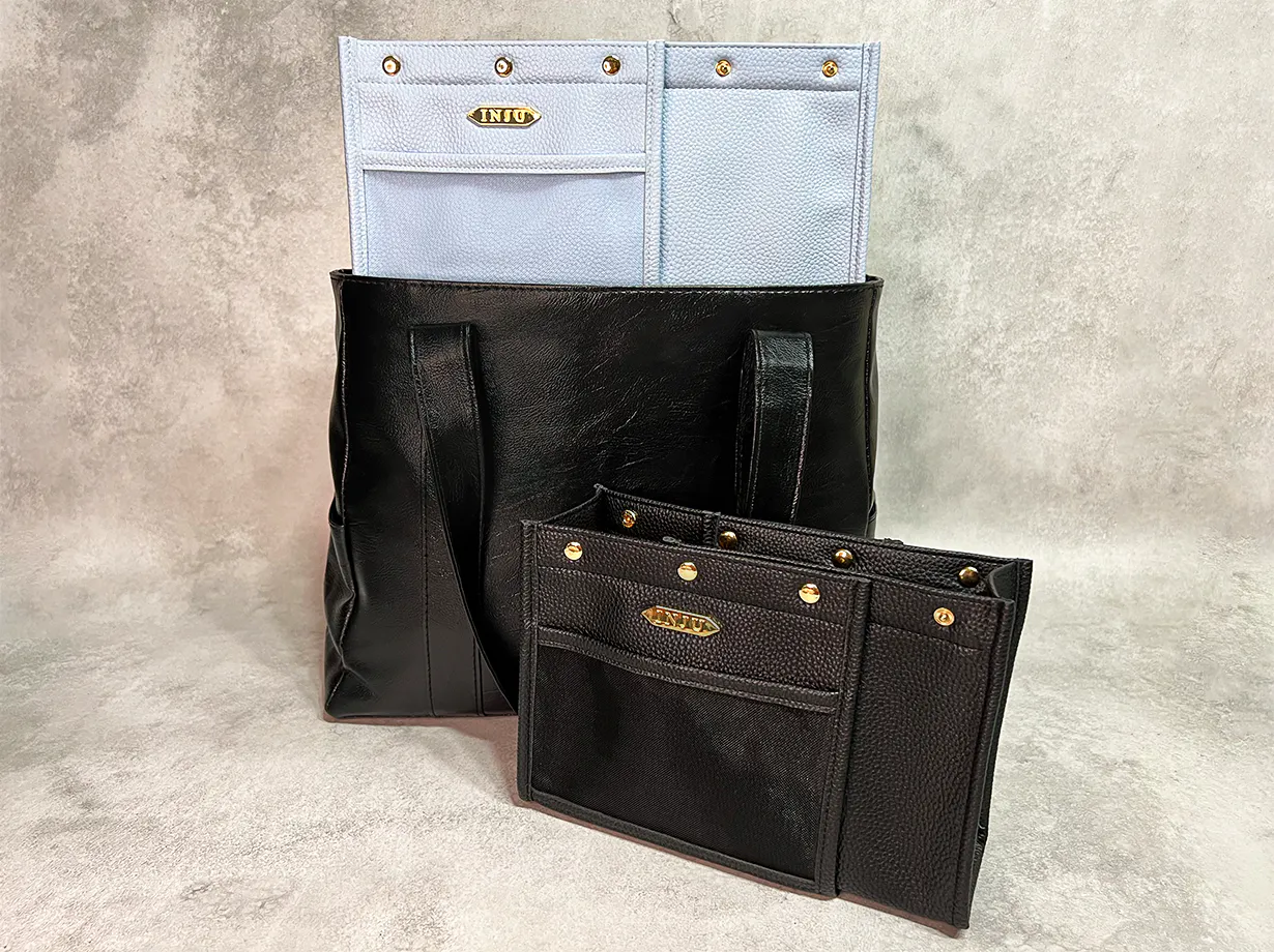 日々、バッグの中で使うアイテムだからこそ、機能性だけではなくデザイン性を兼ね備えたバッグインバッグも必要です。私共のバッグインバッグは、ファッション性も取り入れており、お気に入りバッグとのカラーコーデをお楽しみいただきながら、バッグの中を見るたびに気分が上がる体験をお届けいたします。