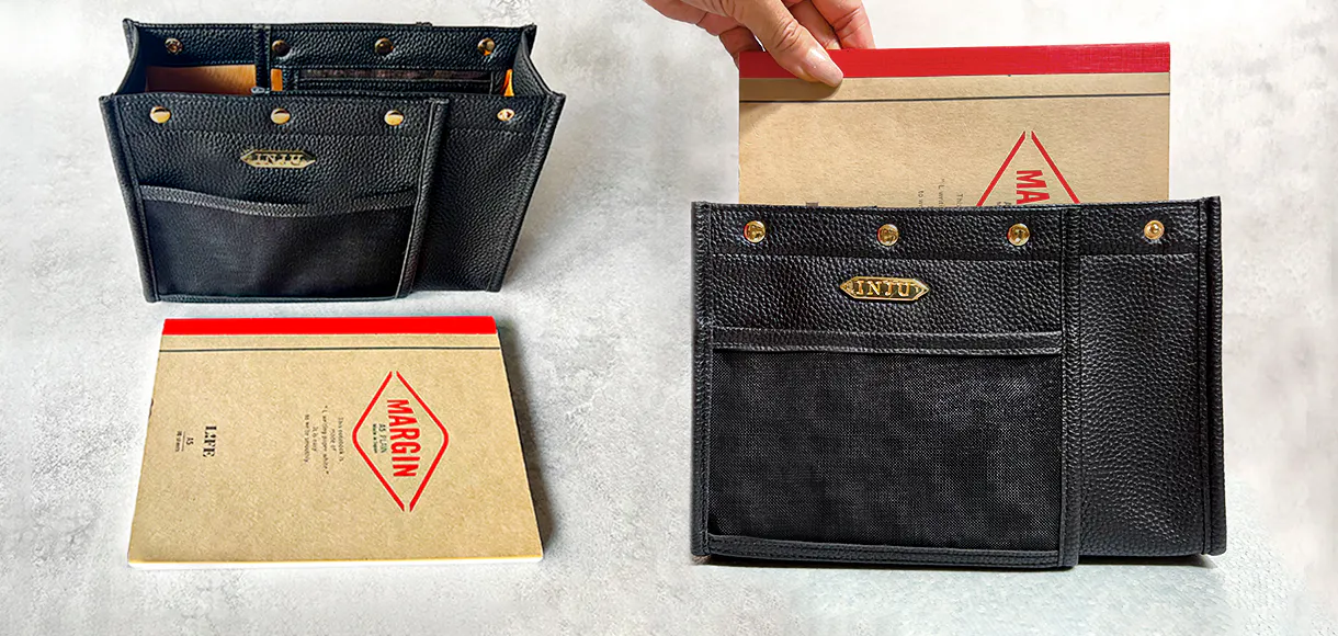 ブランド名「INJU」とは、バッグの中で使用する日常使いの小物収納アイテムの内側にまでスポットをあて、造形美と機能美から織りなす洗練美をコンセプトに掲げるブランドです。
