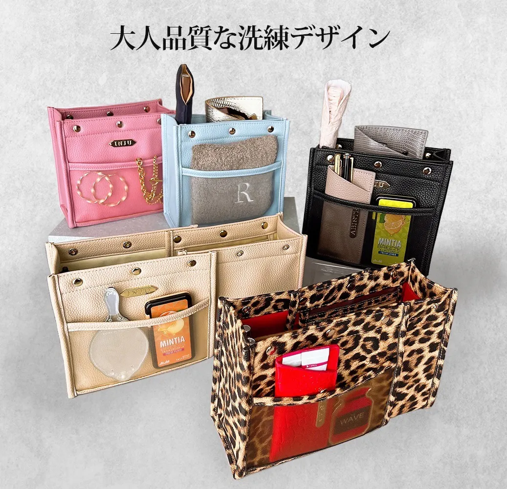 現在お使いのバッグインバッグに不満を感じている方、あるいは、ポーチをたくさん使用してバッグの中がポーチだらけになってしまっている方、さらに、今までバッグインバッグを使ったことがない方にも、バッグの間取り変更が可能となるバッグインバッグで快適な日常生活をお届けいたします。