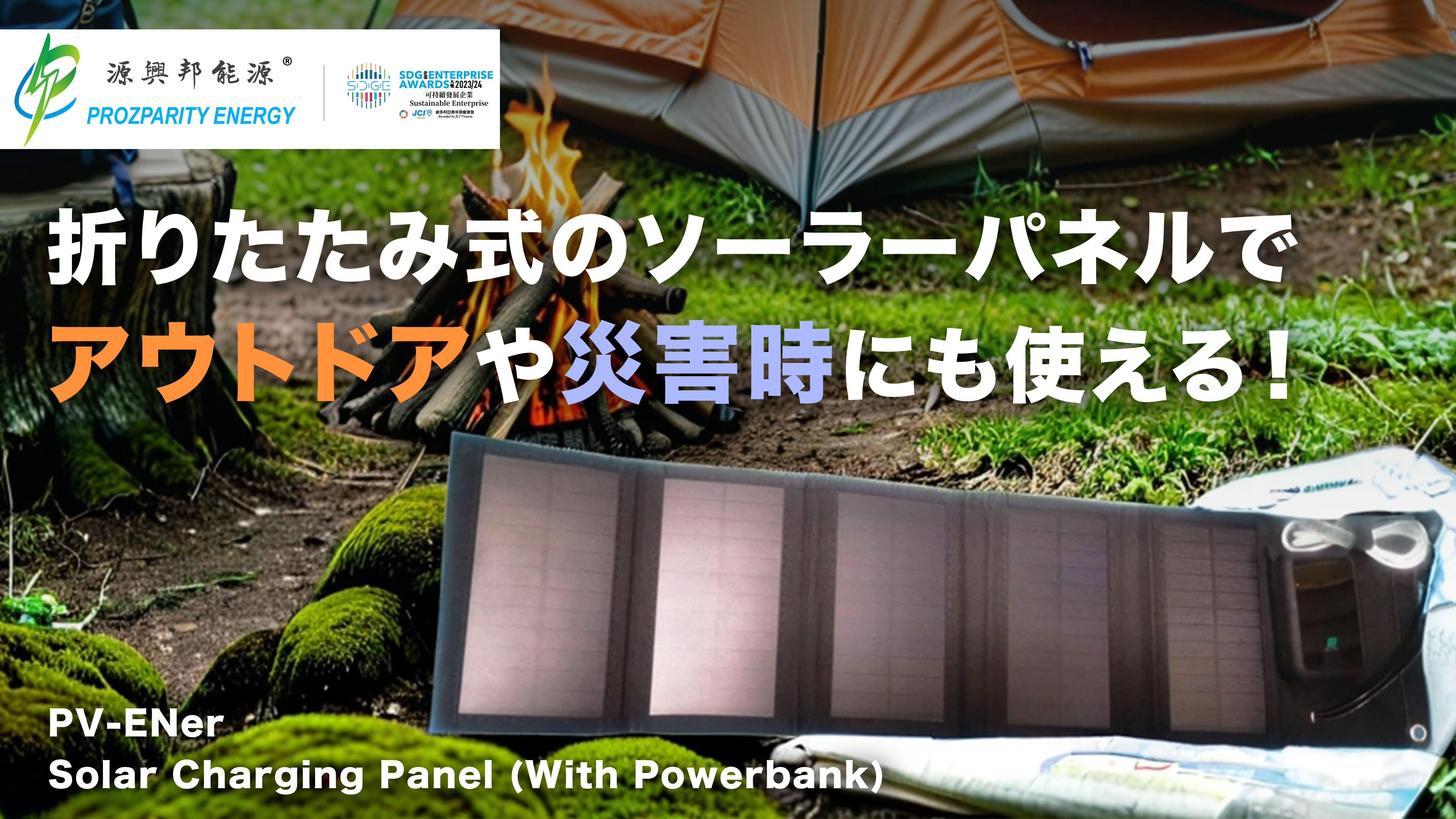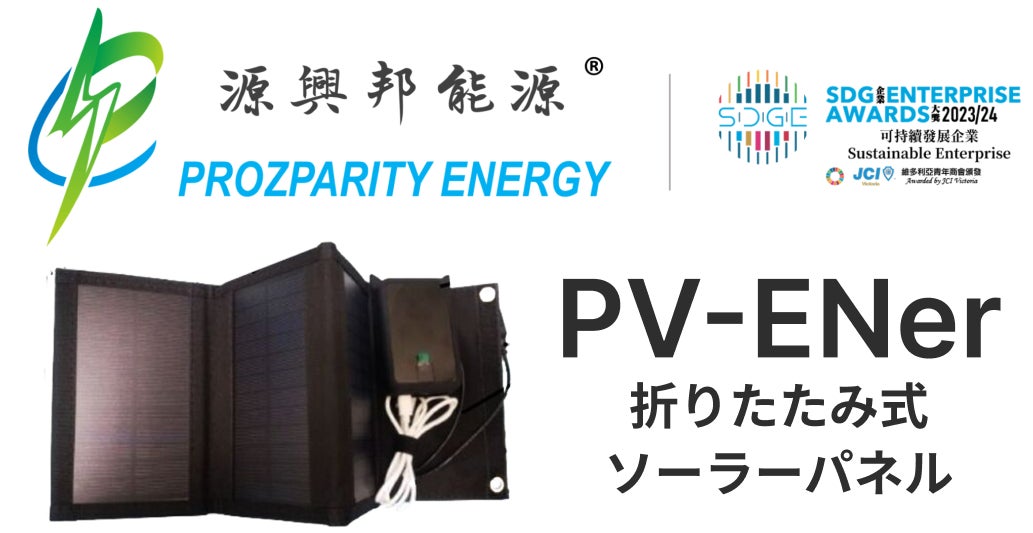 PV-ENer - Prozparity Energyのポータブルソーラー電源は、どこにいてもクリーンで再生可能な電力を供給します。PV-Enerの頑丈で防水、折りたたみ可能な構造には、高効率ソーラーパネル、10,000mAhリチウムイオンバッテリーパック、デュアルUSB出力ポートが、軽量でコンパクトなパッケージに収められています。