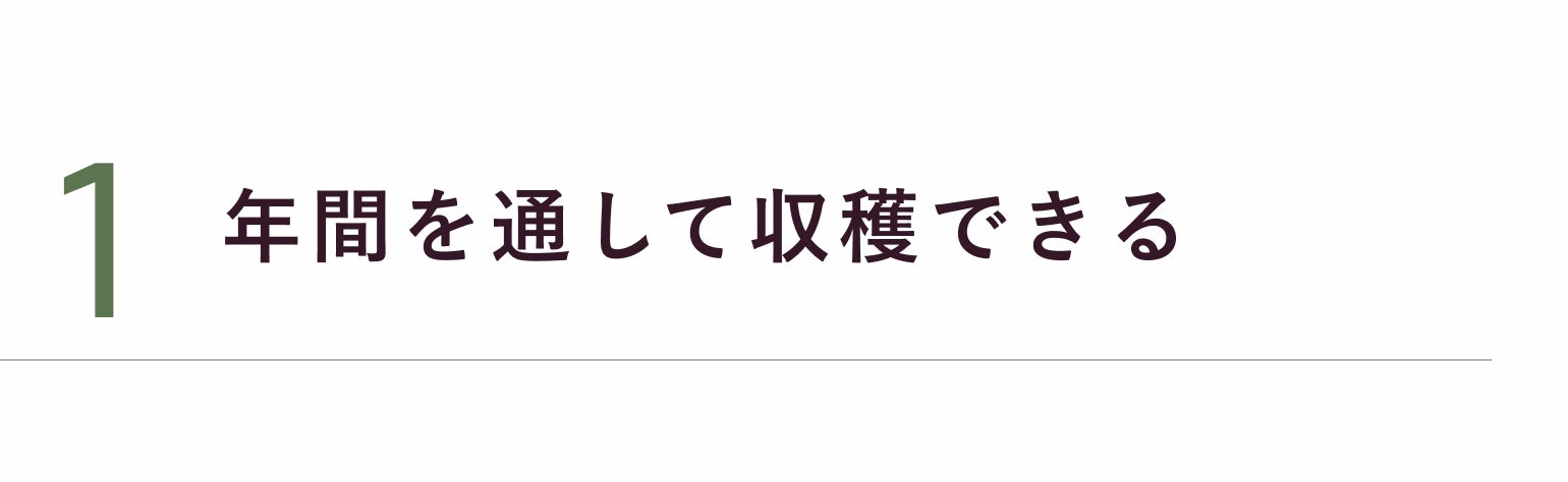一年中料理に使われる食材であるしいたけは年間を通じて収穫できるため、仕事がなくなる心配がありません。栽培がかんたんで一つひとつが軽量なことから大きな力がいらないことも魅力です。室内で対応できるため、暑さや寒さ対策も万全です。