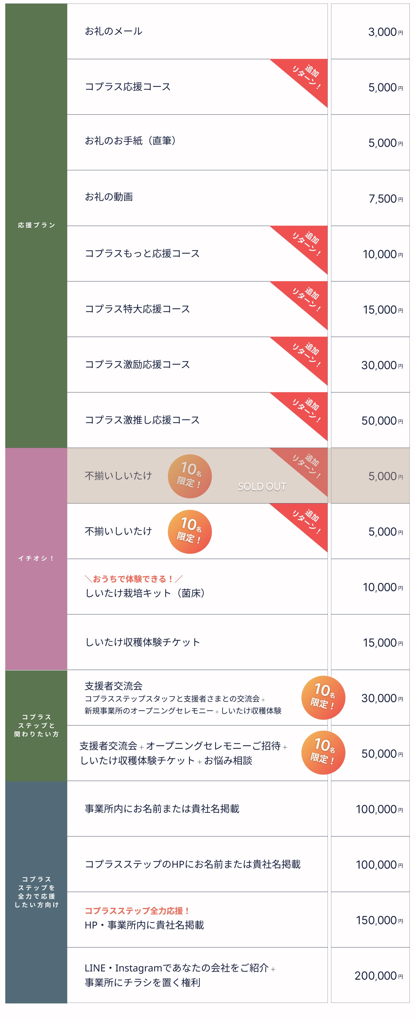 2025/12/09 15:17こんにちは!COPLUS STEP河内山です!今回は皆さんに大発表をさせていただきます!実は11月下旬より、某有名焼き肉店で我々の「東京福しいたけ」を採用していただいております…!私たちが普段「ちいたけ」と呼んで、特に飲食店さんとお取引の多かった小さいサイズのしいたけが採用されています。今までお求めいただいていた飲食店さんや八百屋さん、食べチョクやイベントでの出店も引き続き行いつつ、大口の出荷のために日々皆で全力で生産作業をしております!どれくらい大口かと言いますと、個人飲食店さんの場合一週間に1.5~2kg出荷が大体の相場だったのですが、今回は1日最低10kg・・・・・・・・・・・・・・!!!一週間で70-80kgの出荷をしております。規格も厳しく決められているため、頭も体もフル回転させて、皆で頑張っています。私がしいたけ栽培を始めるときに掲げた目標のうちの一つに、「推しに食べてもらう」がありました。実はこれは既に何人かの推し(というか応援させていただいているスポーツ選手)には直接お渡しして食べていただける機会があり、一部達成しております。しかし関わりが全くない推し、食品を差し入れできない推し(つまり私のすきな女性アイドルやメイド喫茶のメイドさんとか)には食べてもらえなかったんです。でも!今回大手焼肉店での全国取り扱いが始まったことによって、より多くの推しに食べてもらえるチャンスができたのです。そしてもちろん、このクラウドファンディングでご支援いただいた方にもお店で気軽に(と言っても少々お高いお店なのですが)食べていただけるチャンスにもなります!利用者の方が目の前で自分たちのしいたけが食べられるところを見る機会も増えます。出荷量が多く、また就労継続支援事業所としてのキャパもあるのでなかなか忙しくなって大変な日々ではありますが、皆で力を合わせて、この調子でどんどん世間に羽ばたいていけるように頑張ってまいります^^ もっと見る