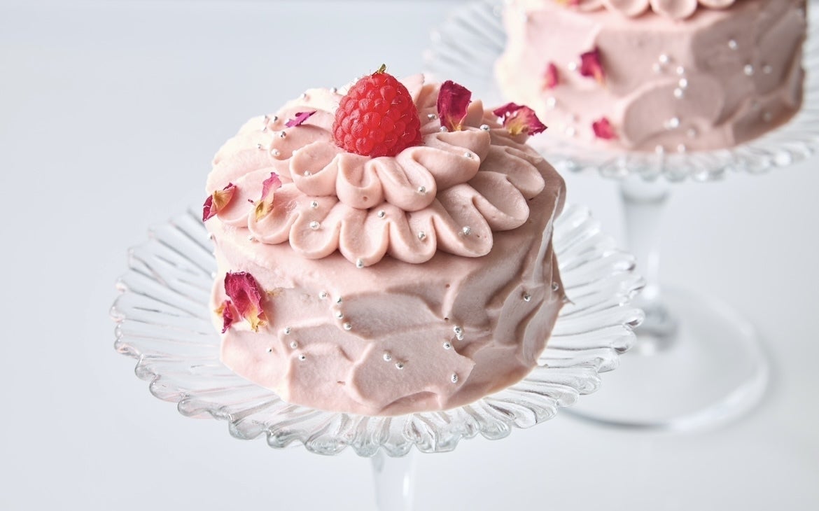 このルビーチョコレートを、濃厚なジャージー生クリームと合わせ、他にはない贅沢な味わいを実現しました。また、定番商品の「薔薇と苺のショートケーキ」のデコレーションを受け継いだデザインで、トップにはフランボワーズを飾り、見た目も可愛らしく仕上げています。