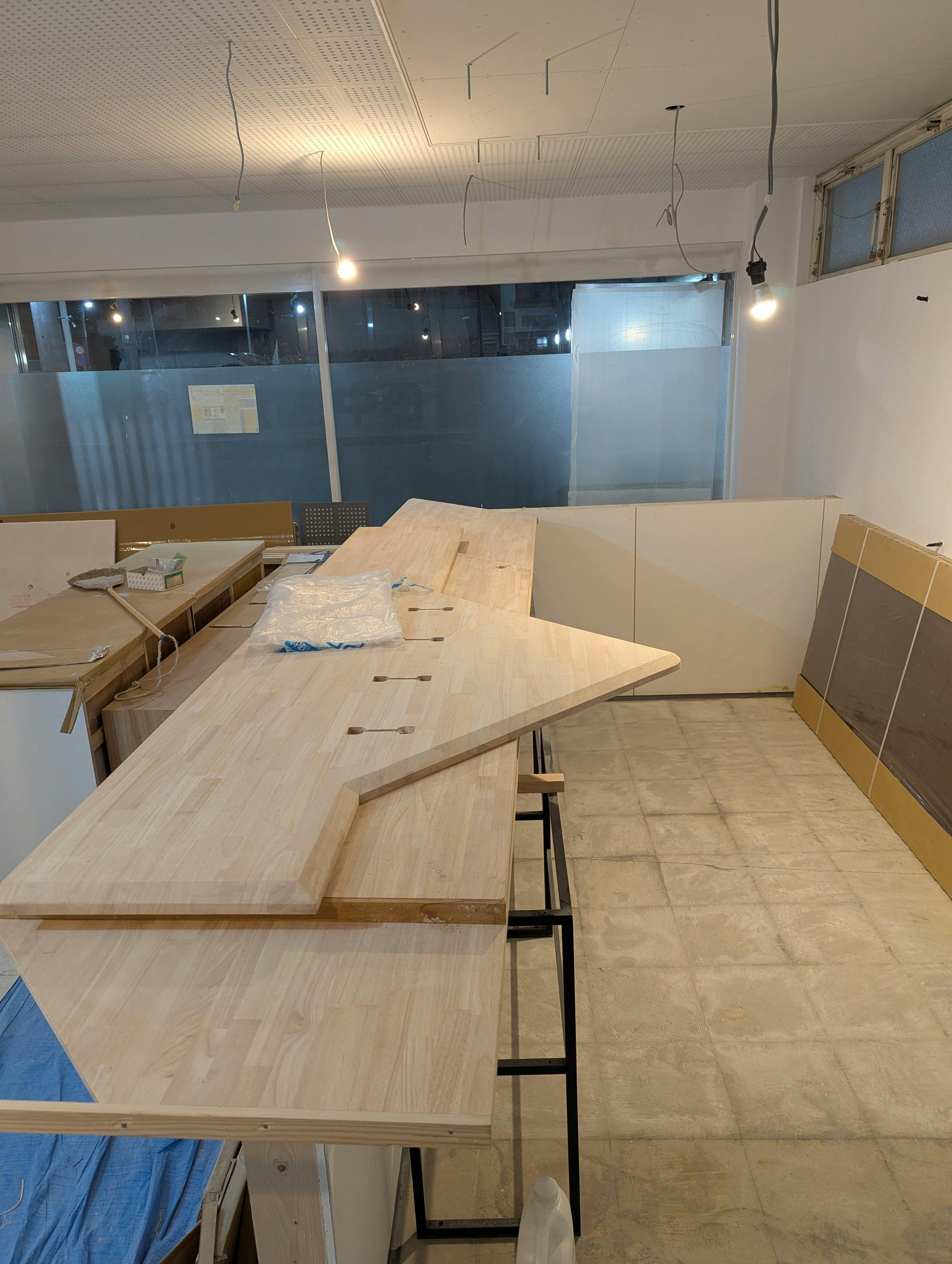 2024/12/08 08:00みなさま ご支援 ありがとうございます♡みなさまからのあたたかいご支援をいただき、現在目標の300万円までもう少しのところです。さて、イイトコ1階cercle(セルクル)の工事は着々と進んでおります。先週は壁の下地ができて、翌日には天井の塗装が進んでいました。だんだんと完成に近づいております。写真は車椅子用のカウンターの加工中の様子ですが、このカタチには実はこだわりがつまっています。車椅子でご来店のみなさまは食事に介助が必要な人もおられます。それでもここで食事をしたい。介助をしてもらうとしても、より食べやすく、そしてお互いの顔を見て食事がしたい。このカウンターならそれが実現するのです(^_-) もっと見る