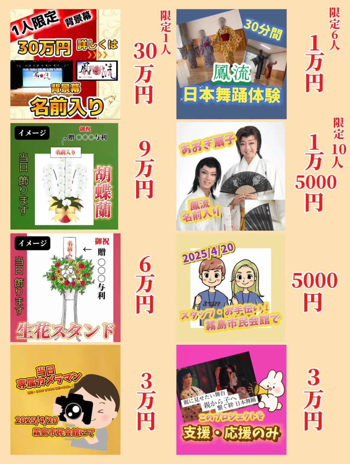 2025/04/21 11:06本当に沢山のご支援。ありがとうございました。皆様のご支援で夢が叶いました。来場されたお客様も715人程でございました。皆様とっても喜んでいただけて頑張ってきたかいがありました。これからも鳳流はまだまだ!精進して参ります!これからも宜しくお願いいたします! もっと見る
