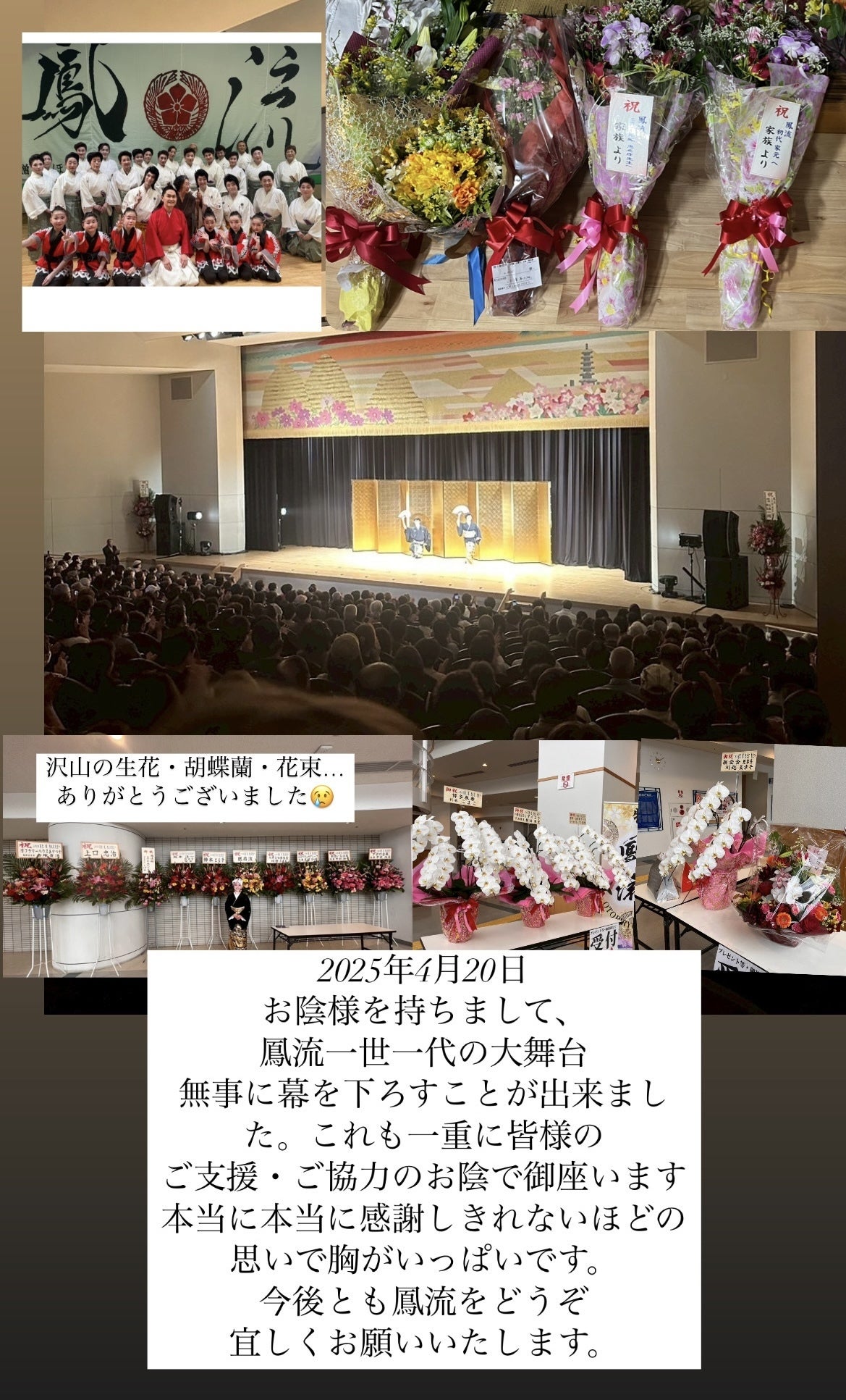 4年前 初代家元から二代目家元として引き継ぎ鳳流を継続する。初代家元の時代から鳳流でお稽古されている生徒さんと共に今回の舞台に立ち 皆で 喜びを分かち合いたい 想いと 親から子へ 流れる 熱い芸の血を受け継いだからには! 鹿児島県 日本 世界へと伝統芸能である 日本舞踊を鳳流らしく広めていきたい!