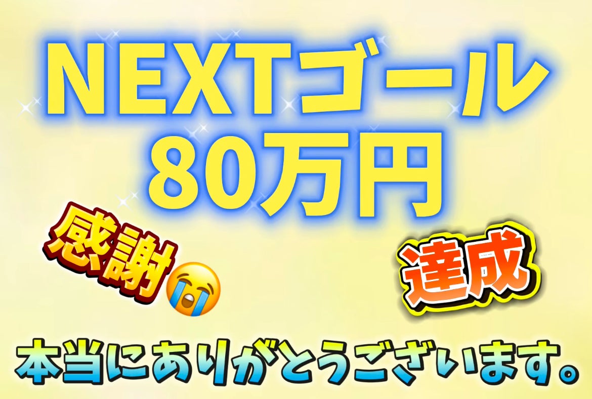 皆様のお陰を持ちまして、80万円…達成致しました。