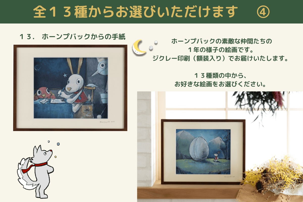 このイラストには、モマちゃんの想い、ウォルフが考えていることなど、見る人それぞれが自由に物語を想像できる温かさが詰まっています。