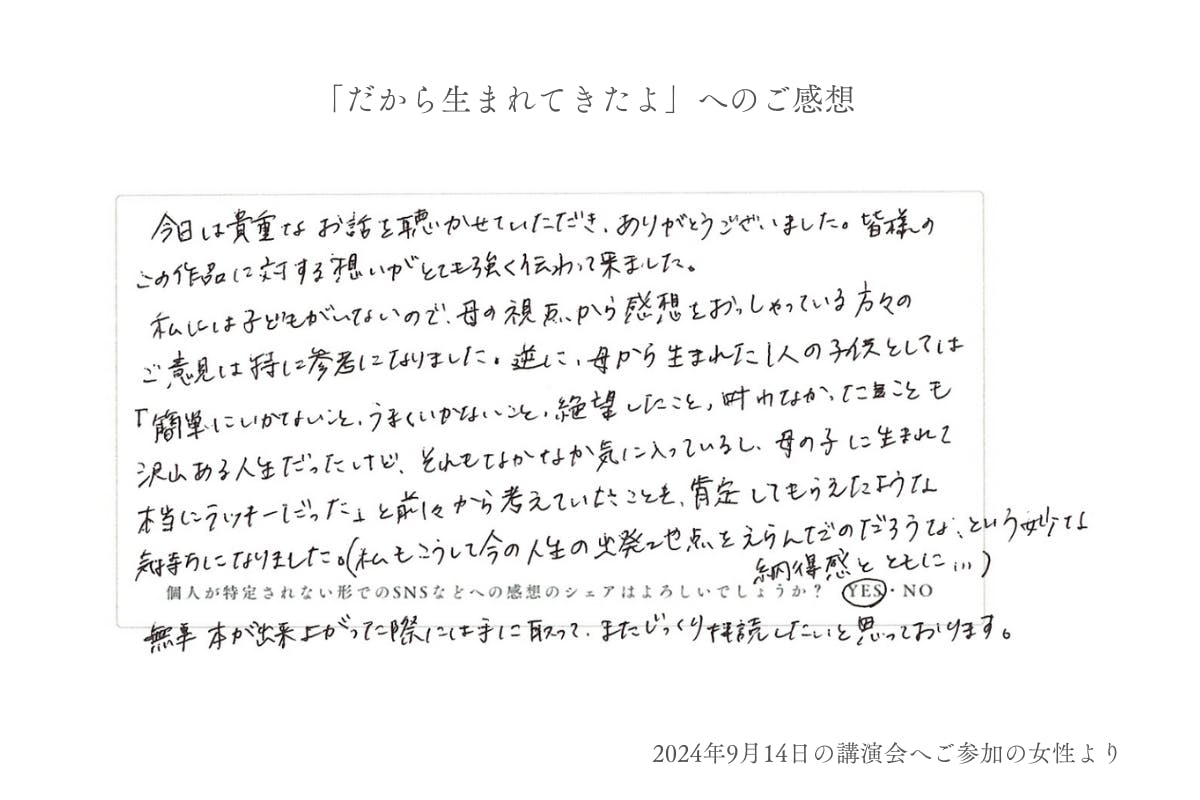 「母の子に生まれて本当にラッキーだったと前々から考えていたことを肯定してもらえたような気持ちになりました」 女性