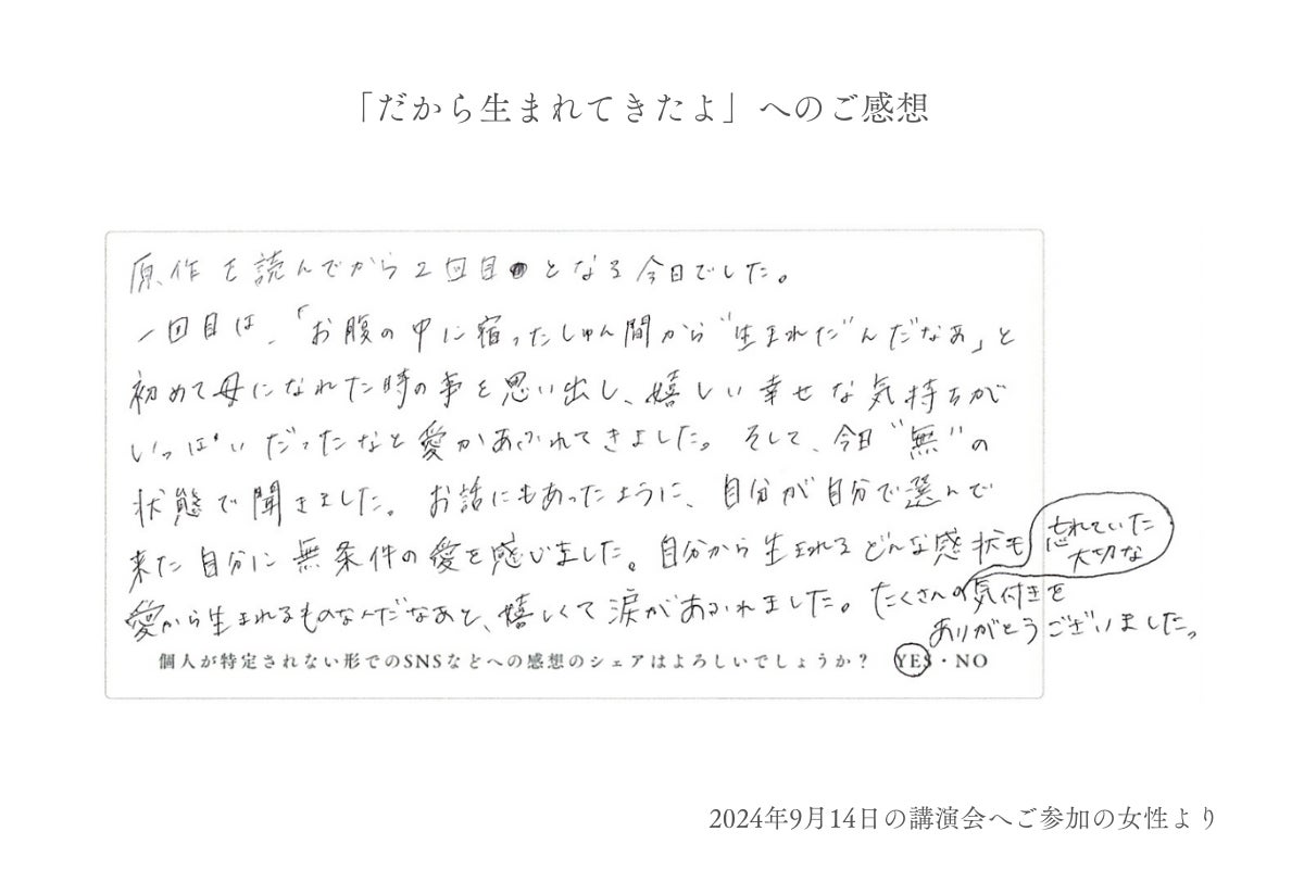 命の絵本『だから生まれてきたよ』が、一人でも多くの方のもとへ届き、この先生きていく光になることを心から願っています。