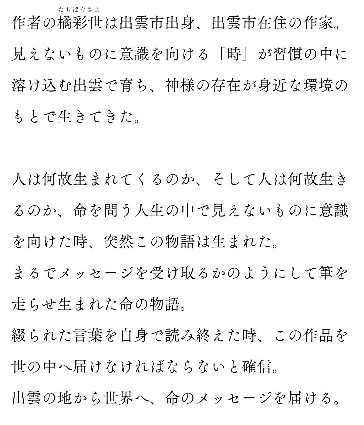 作者が出雲という地に思いを馳せたときに生まれた物語。