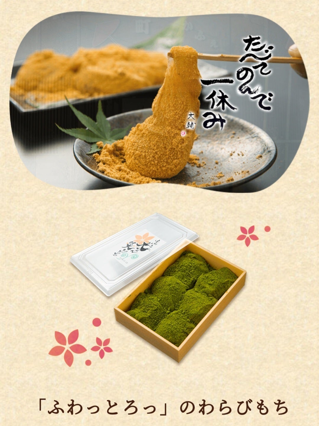 和テイストな店内と人気の「ふわっとろっ」なわらび餅!