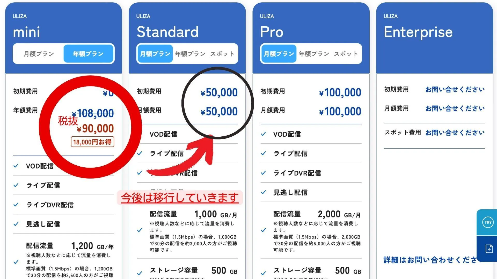 少人数に向けての動画配信だとこのプランが一番良いと判断しました。