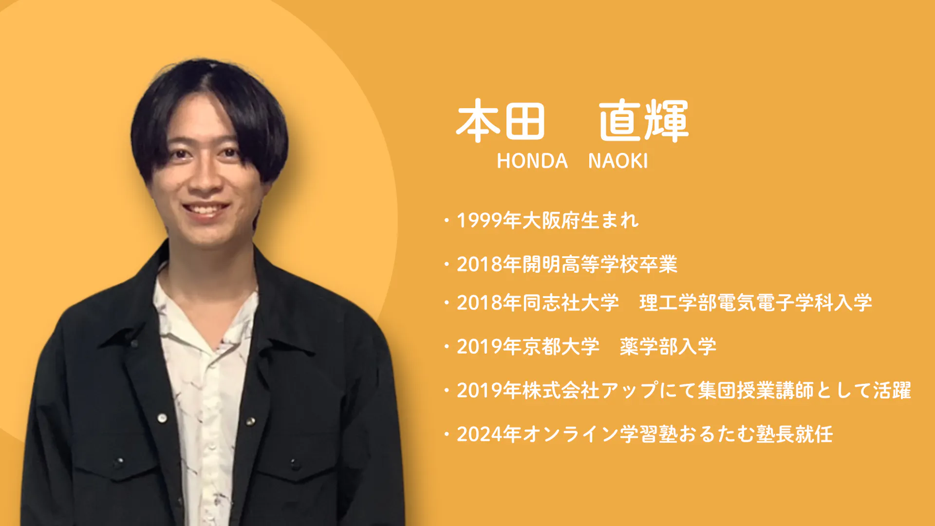 私は京都大学薬学部出身の本田 直輝と申します。