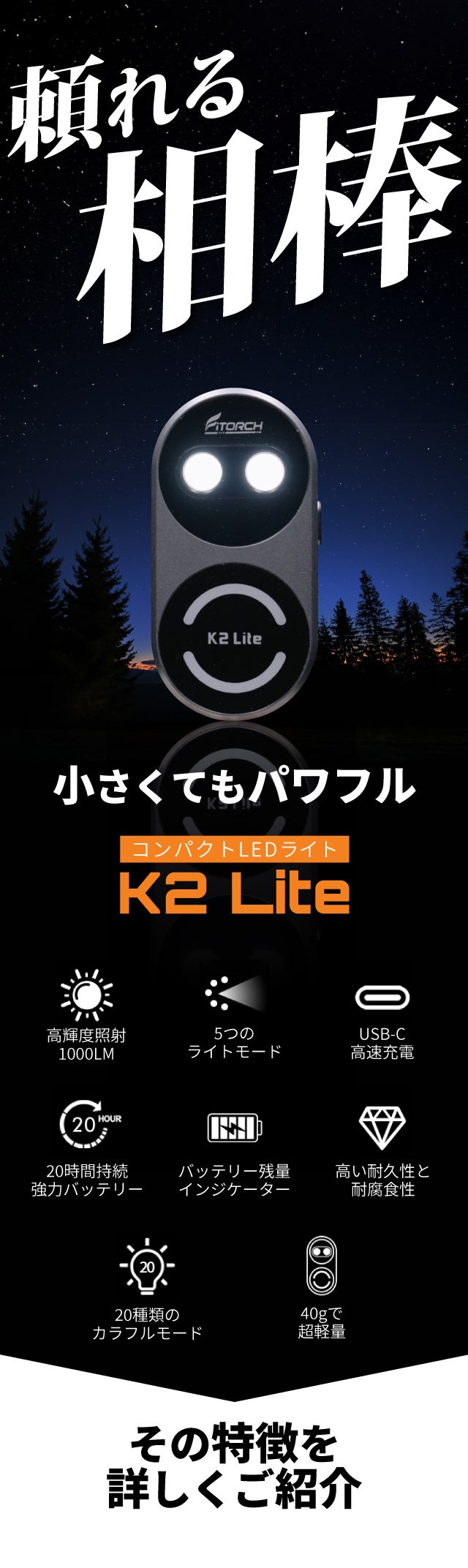 ※タイトル株式会社は本製品(K2 Lite)を製造・販売するShenzhen Fitorch Co., Ltd.社の日本における販売権を有する正規販売店です。https://fitorchstore.com/
