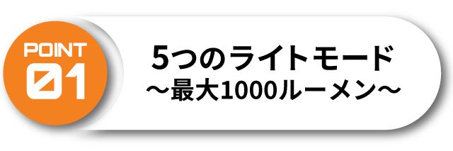 エコ(2LM)/低(30LM)/中(150LM)/高(1000LM)/ストロボ(1000LM)の5つのライトモードからお選びいただけます。