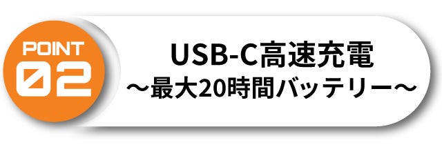 USB-C対応で、たった1時間でフル充電が可能!