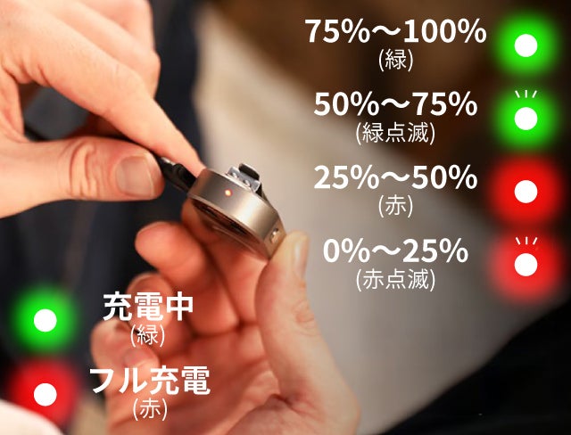 ランプの色でバッテリー残量がひと目で分かります。
