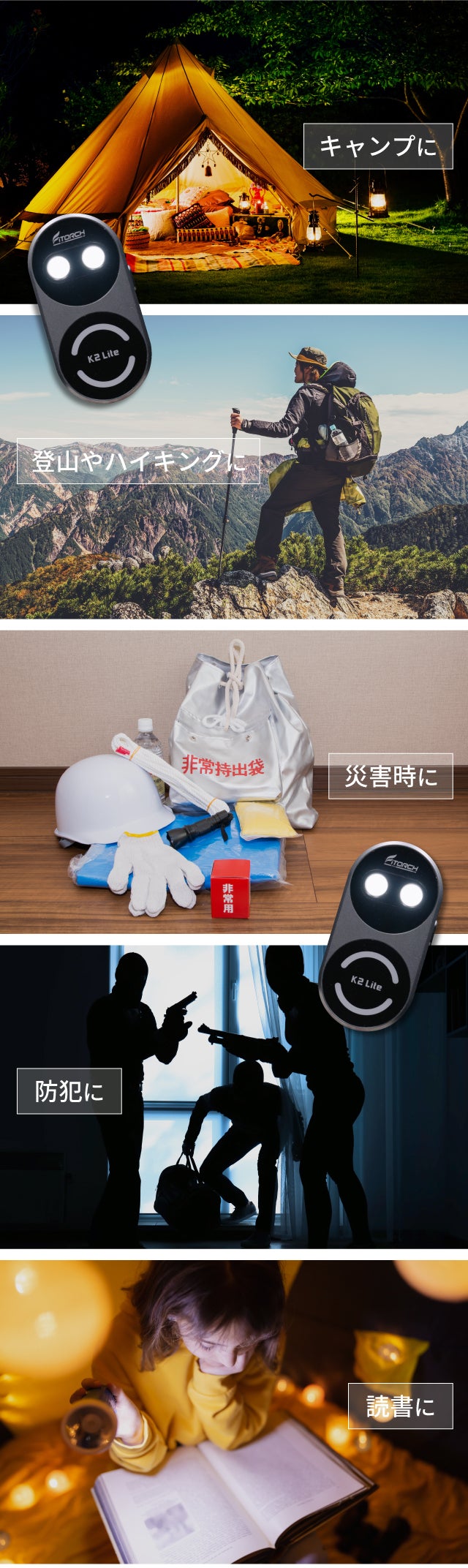 皆様の日々の暮らしを少しでも便利に快適にするために、日本にはない優れた商品を海外で発掘し、日本で流通させています。 今回の商品は、Shenzhen Fitorch Co., Ltd.の商品である最新のLEDライトであり、弊社は日本における総代理店としてこの商品をCAMPFIREにて皆様にご紹介することで、お客様の評価・ご意見をいただき、さらなる商品開発および発掘のヒントまたは商品流通のリサーチとさせていただきたいと考えています。
