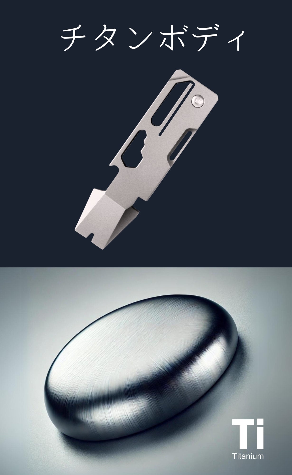 高い耐久性 チタンの強靭な特性により、衝撃や圧力に強く、長期間使用しても変形や損傷の心配がありません。アウトドアや過酷な環境でも安心してお使いいただけます。