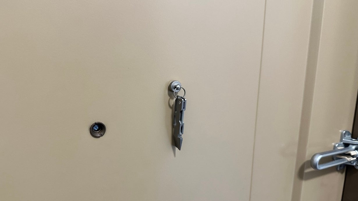 帰宅してすぐに段ボールを開けたい時に、玄関のドアに貼り付けたマルチツールがすぐに役立ちます。重たい荷物を部屋に運ぶ前に、玄関で手早く開封できるので便利です。