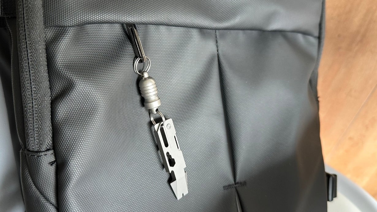 マルチツールと一緒に使うことでさらに便利になる、チタン製マグネットキーホルダー(別売り)。