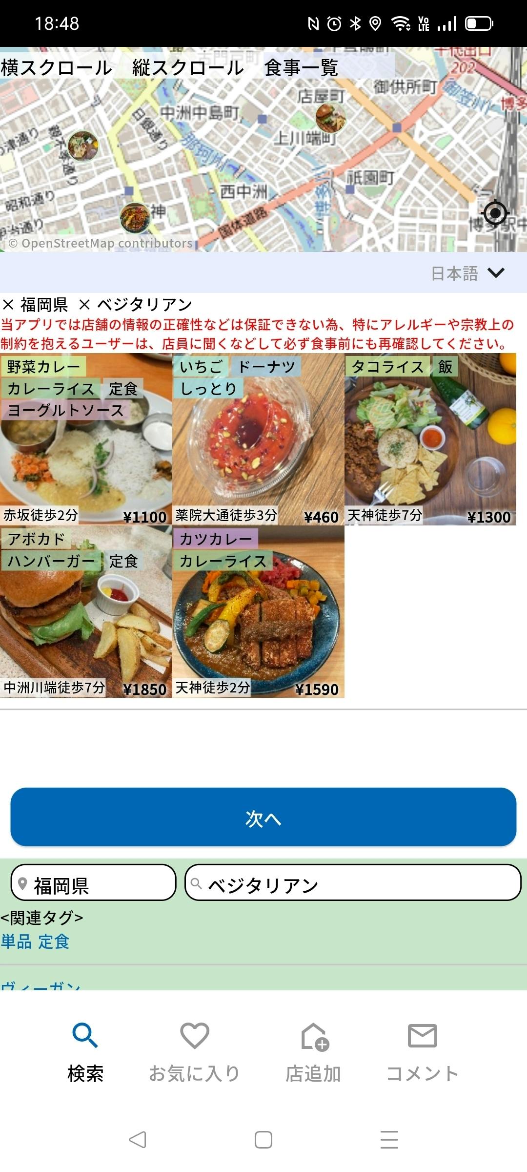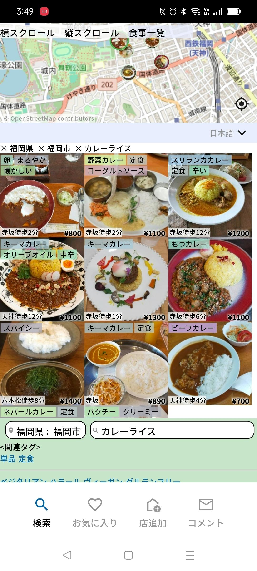 2024/11/05 15:05ご当地料理/ご当地グルメまたはベジタリアン,定食などを検索できる店検索アプリ「日本メニュー表」です。プロジェクトの報告をいたします。プロジェクトを支援していただいた方ありがとうございました。この飲食店検索アプリの進行状況同様、なかなか目に留めていただけず、苦しい結果となってしまいましたが、今回PJの実装自体の結果報告をいたします。今回のPJを受け、ご当地料理アプリ「日本メニュー表」に以下2表示を追加しました。1.食事内容の「縦スクロール」表示2.食事内容「食事一覧」表示これらは画面左上から選択できます。1.食事内容の「縦スクロール」表示こちらは縦にスクロールして、色々な食事を比較できる画面です。店を料理で比較できる上、地図も自動で連動します。さらに、下の方には関連タグ表示をつけました。そもそも各グルメのタグは全部ボタンになっており、それでもフィルタリングできますが、一応タグ自体が分かりやすくなる表示として今回実装しました。2.食事内容「食事一覧」表示詳細な比較というよりは、写真と簡単な概要で一気に比較したい、という方もいるかと思い、本画面も追加しました。見た目判断なのもなんだかなあと思うところですが、それでも重要視する方はいると思うので..もちろん、福岡ご当地グルメである、もつ鍋や、ラーメンはもちろんのこと、カレーや、ピリ辛など、各タグも選択すればフィルタリング機能として働きます。今回のPJ中、他にも、写真を大きくし映えで店を選べる表示モードを作ったり、アレルギー表示を非表示にしたり、表示したりできるようにしたり、お手頃やコスパタグを作ったり、色々やっておりました。[モード変更画面]・食事だけさっと比較できる食事のみ表示モード・どんな店か気になる方の為の、店情報つき表示モード・写真が大きい映え重視の表示モード を選べる。[食事の写真映えで選びたい人はこの表示で]以上、今回のPJ報告でした。ーーーーーーーー今後ですが、引き続き改修を行い、いつか皆様のお役に立てるように頑張って参る所存です。できれば暖かい目で応援いただけると助かります。*今後例えば、店の雰囲気タグを加えます。カジュアル、大衆的庶民的、薄暗い照明、などでフィルタリングできるようにします。あと、今回はうまくできず諦めましたが、やっぱりホーム画面をいい感じに作り、旅行者がもっとご当地料理を発見し、比較しやすいようにできないかとも思っています。今回ご支援いただいた支援者様、本当にありがとうございました。引き継きよろしくお願いいたします。藤間iPhoneアプリ:https://apps.apple.com/jp/app/id6473837778Androidアプリ:https://play.google.com/store/apps/details?id=world.foodmenu.japanWeb:https://jp.foodmenu.world/ja/home もっと見る