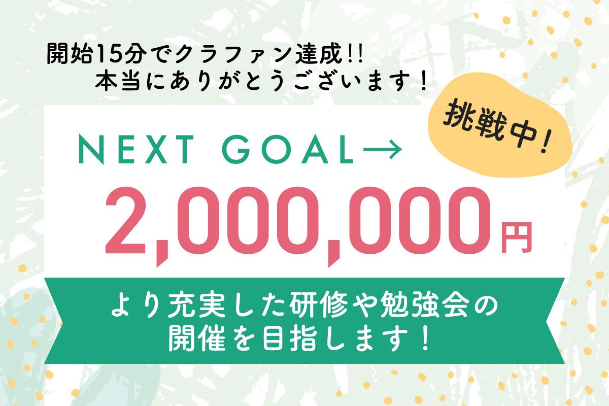 2月25日0時より開始したクラウドファウンディングは、まさかの開始15分で目標金額を達成いたしました!0時の開始を待って、ご支援いただいた皆様には本当に感謝いたします。今回のクラウドファウンディングは、「日本の離乳食のスタンダードを変えたい」という私たちの想いに賛同してくれる仲間を見つけることが最大の目的となっております。クラウドファウンディングの概要を読んでいただき、共感していただける方は、ぜひご支援いただき、私たちと一緒に日本の離乳食の未来を変えていきましょう!現在、ネクストゴールを検討中でございます。引き続き、応援いただけますと幸いです。乳児食育支援協会代表 尾形夏実