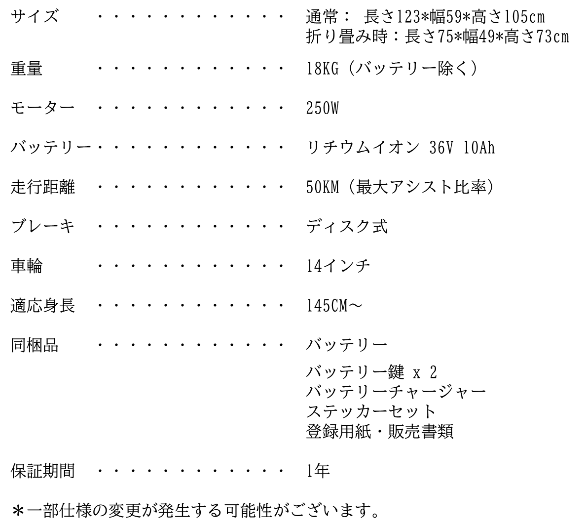 車体は専用のBOXでお届けいたします。車体の同梱物は上記スペックでご確認ください。