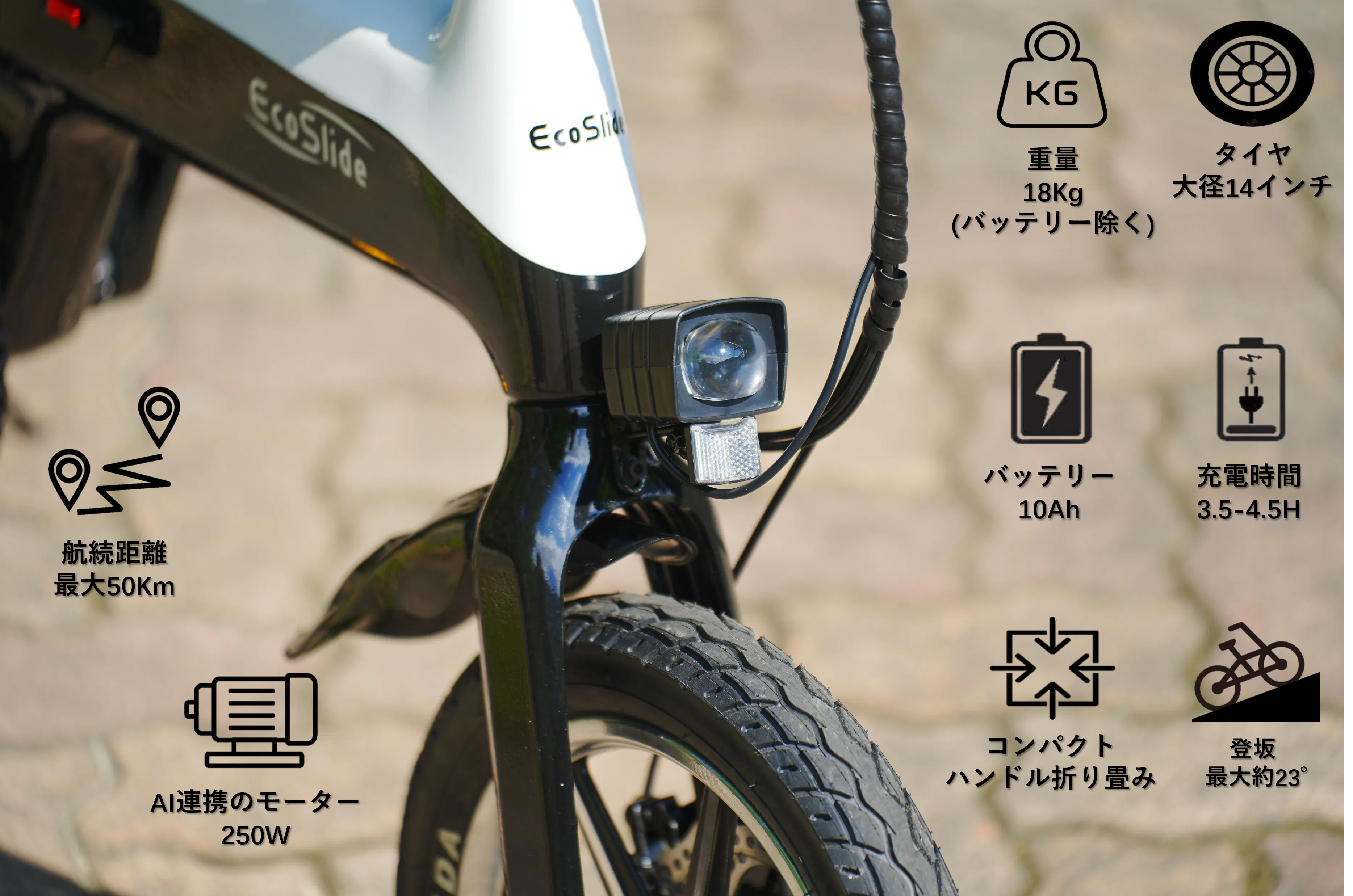 ・取扱説明書の指示に対する不遵守、改造 (カスタム)または不適切な組立に起因する損傷または欠陥・不可抗力、事故、乱用、誤使用、放置、酷使、雨さらし保管、商業的使用・部品の通常の損耗 (例:タイヤ、インナーチューブ、ブレーキパッド、チェーンなど)・不具合発生後の使用や、自主的な修復を試みたことにより不具合発生時の当該箇所の状況確認か困難となっている車体・EcoSlideに関する高度な知識を持つ修理対応店舗により行われた修理である場合を除く修理 を試みたことによるパーツの損傷・部品に対する無許可の改造(カスタム)・国内基準に適合しない仕様または設定となっている車体及び、当該車体を使用したことによる損傷・サイト掲載画像と実際の製品の色味や質感の差異等・機能面及び使用面に影響のない音や振動などの感覚的事象・製造過程、点検整備中にやむを得ず生じる微細な傷、一度でも使用されたあとで発見された傷や塗装の不具合・輸送中にやむを得ず生じる外観上の微細な傷、雨による多少の濡れ・個人輸入やクラウドファンディング等の並行輸入品・中古品・セカンドオーナー・時の経過による変化で発生したもの(塗装面、メッキ面、プラスチック部の色の退色など)・点検、清掃、整備のための費用・直営店以外での修理費用・電話代、運送代、レンタカー代等の修理に付随する費用・休業補償ならびにEcoSlide製品を使用できなかったことによる損害・本保証は、適用される強行法規によって別段の決定がなされない限りEcoSlideの原所有者のみに適用されます。・保証請求は、問題発生日から 2ヶ月以内に実施する必要がございます・本保証は、交換パーツそれ自体のみを保証対象とし、配送料や部品装着の費用を負担するものではありません。